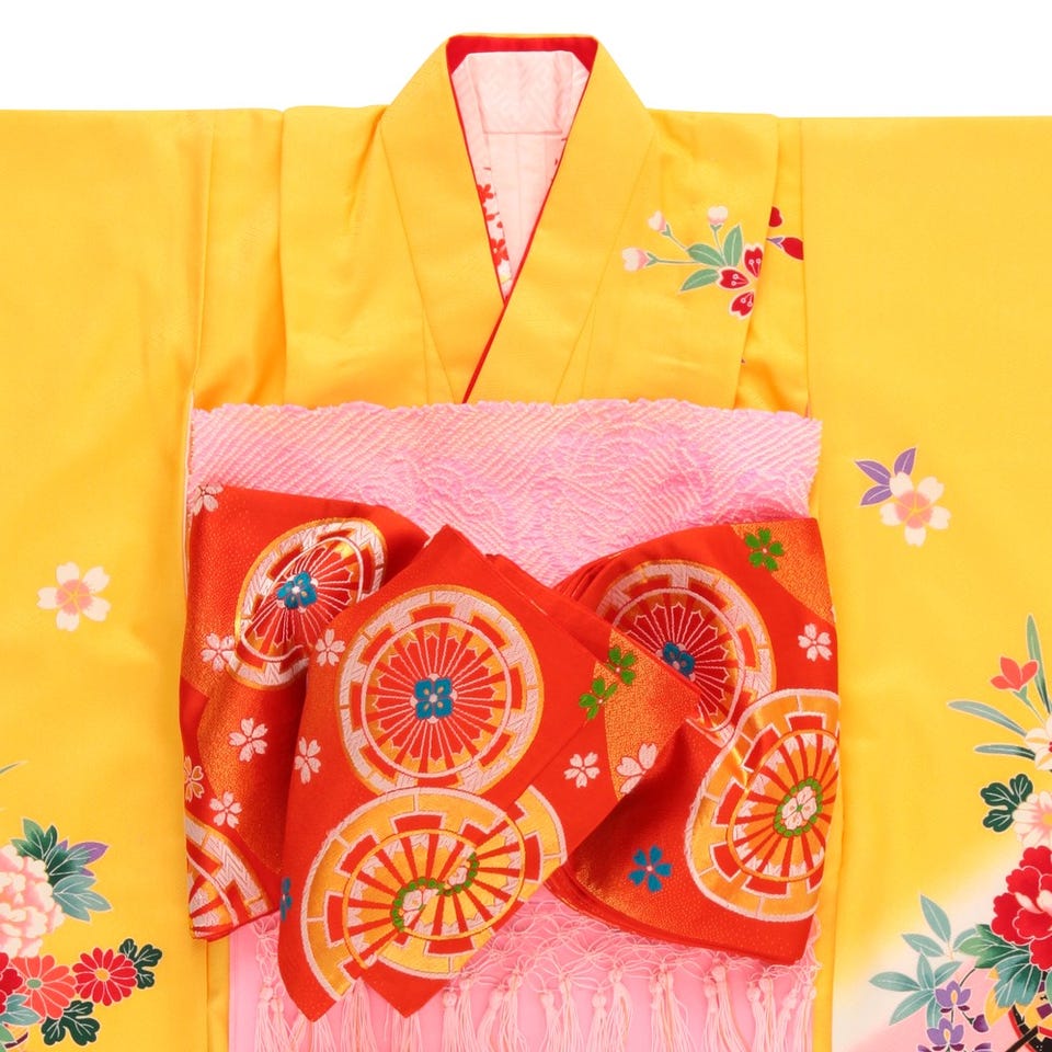七五三/節句 着物セット 7歳女の子 御所車 古典的 イエロー