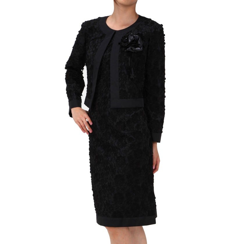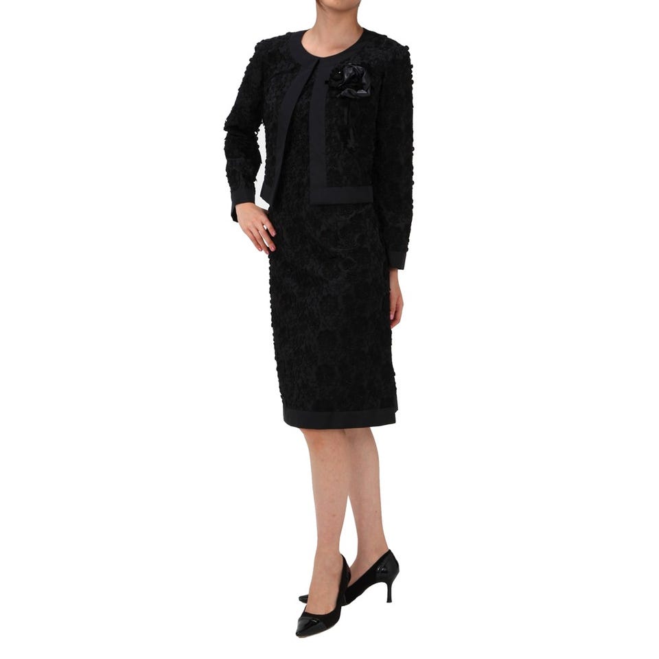 ハロッズ セレモニースーツ3点セット(ジャケット+ミディアムワンピース+コサージュ) ブラック ブラック 11号