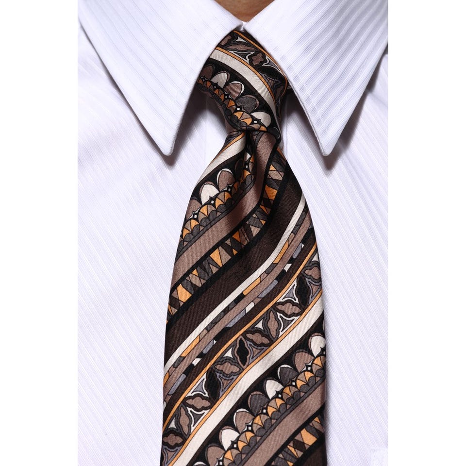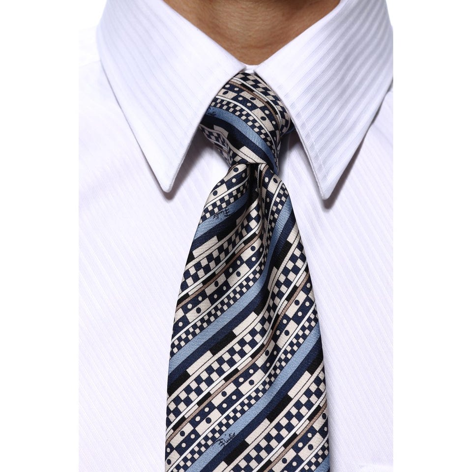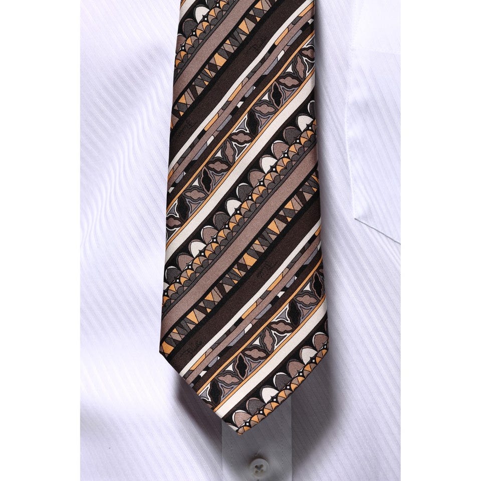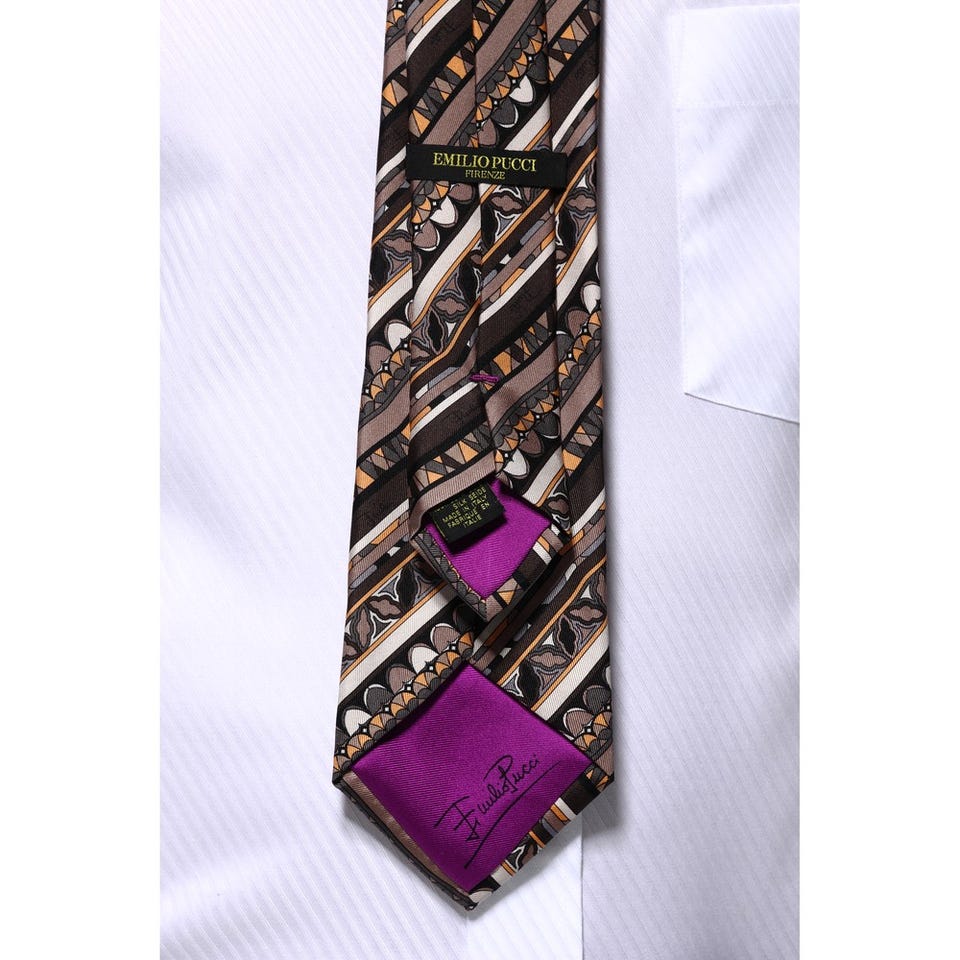 エミリオ・プッチ メンズネクタイ シルク ベージュ / ブラウン / ネイビー アイビーストライプ柄 ベージュ