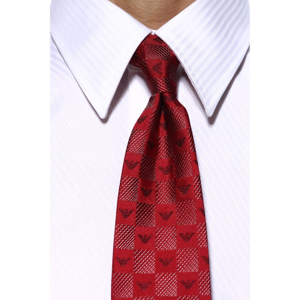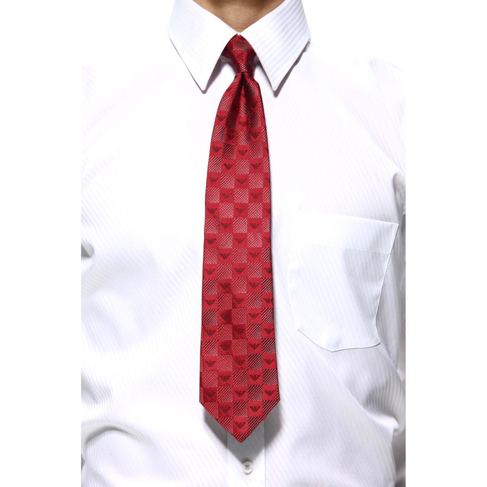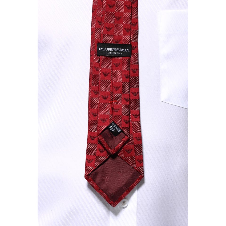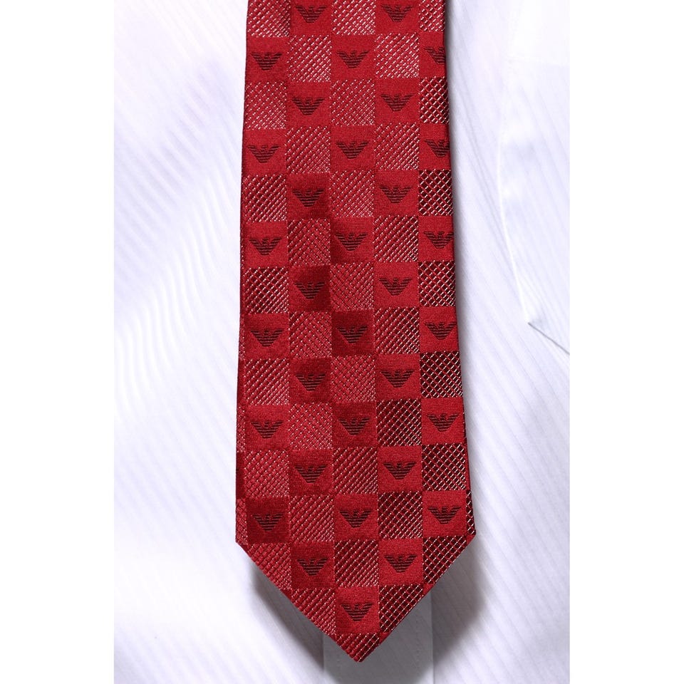 エンポリオ・アルマーニ メンズネクタイ シルク レッド 格子柄 レッド