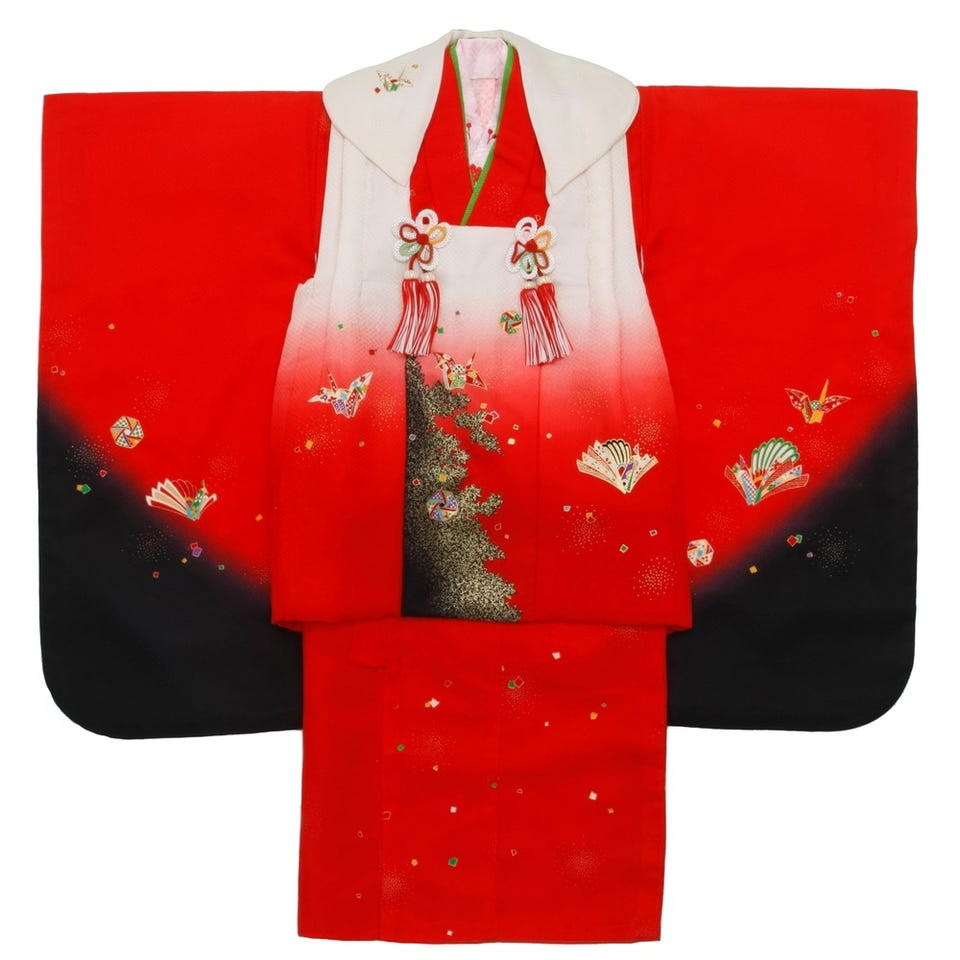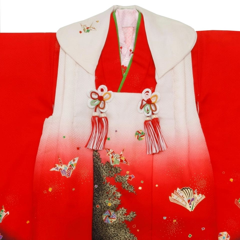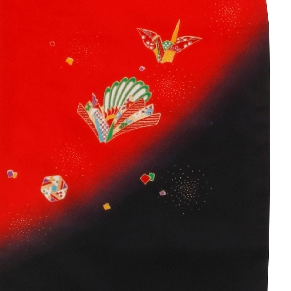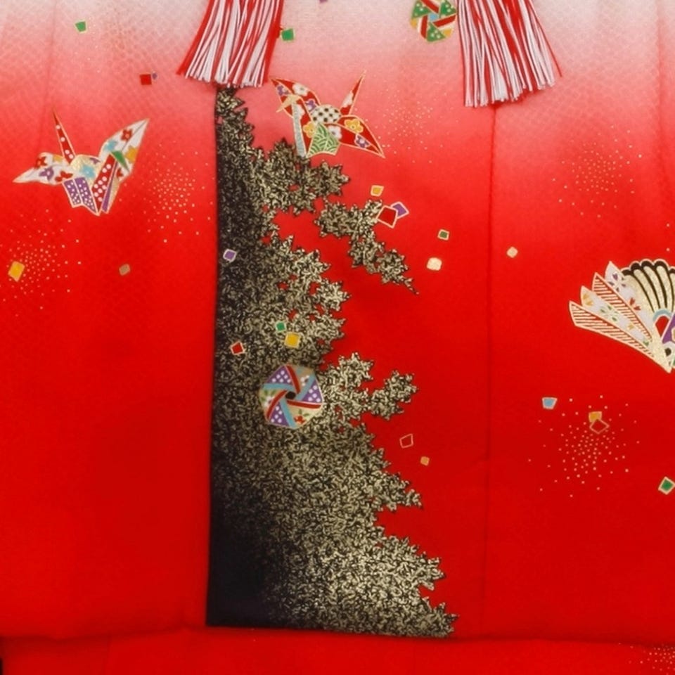 七五三/節句 被布セット 3歳女の子 被布セット 洗練 折り鶴 レッド