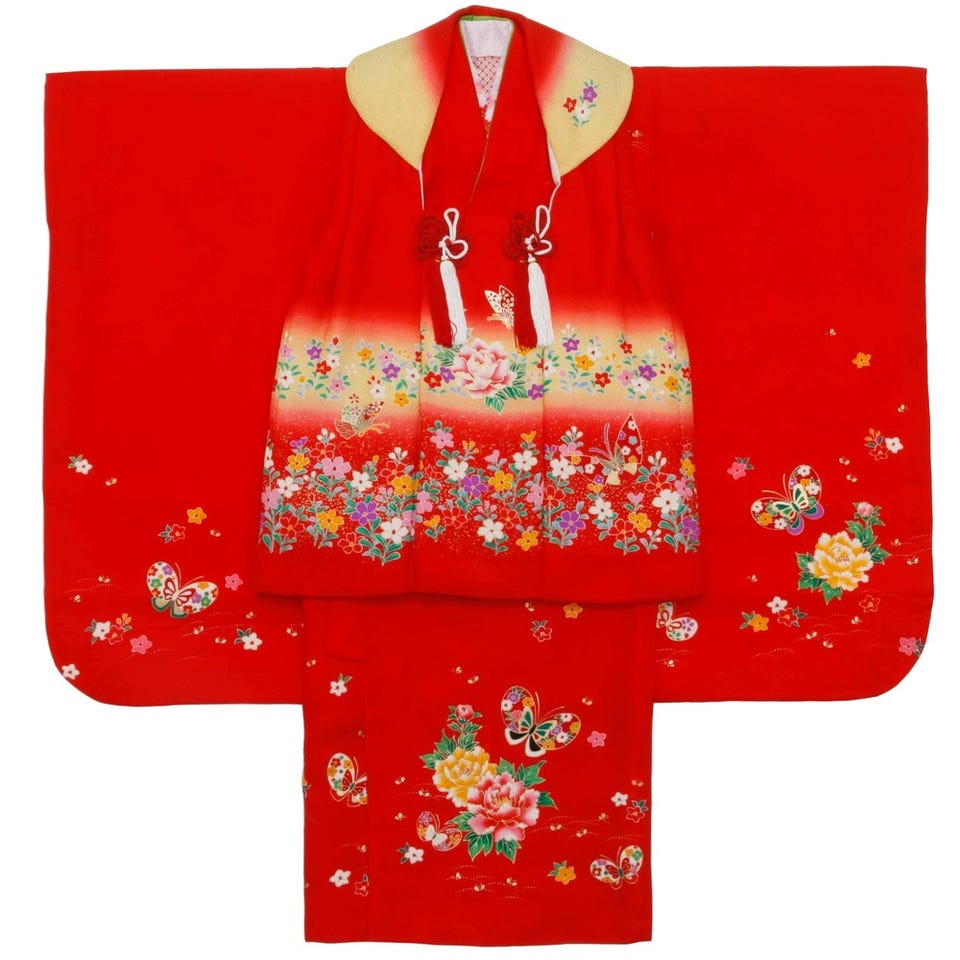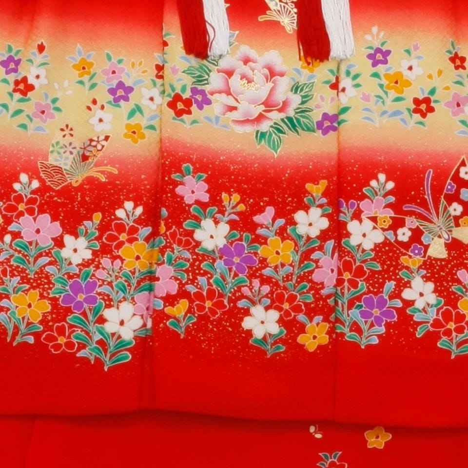 七五三/節句 被布セット 3歳女の子 被布セット 牡丹とお花畑 レッド