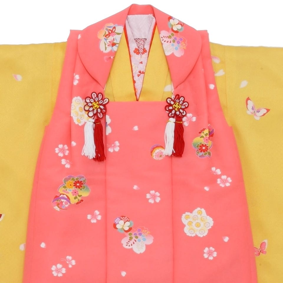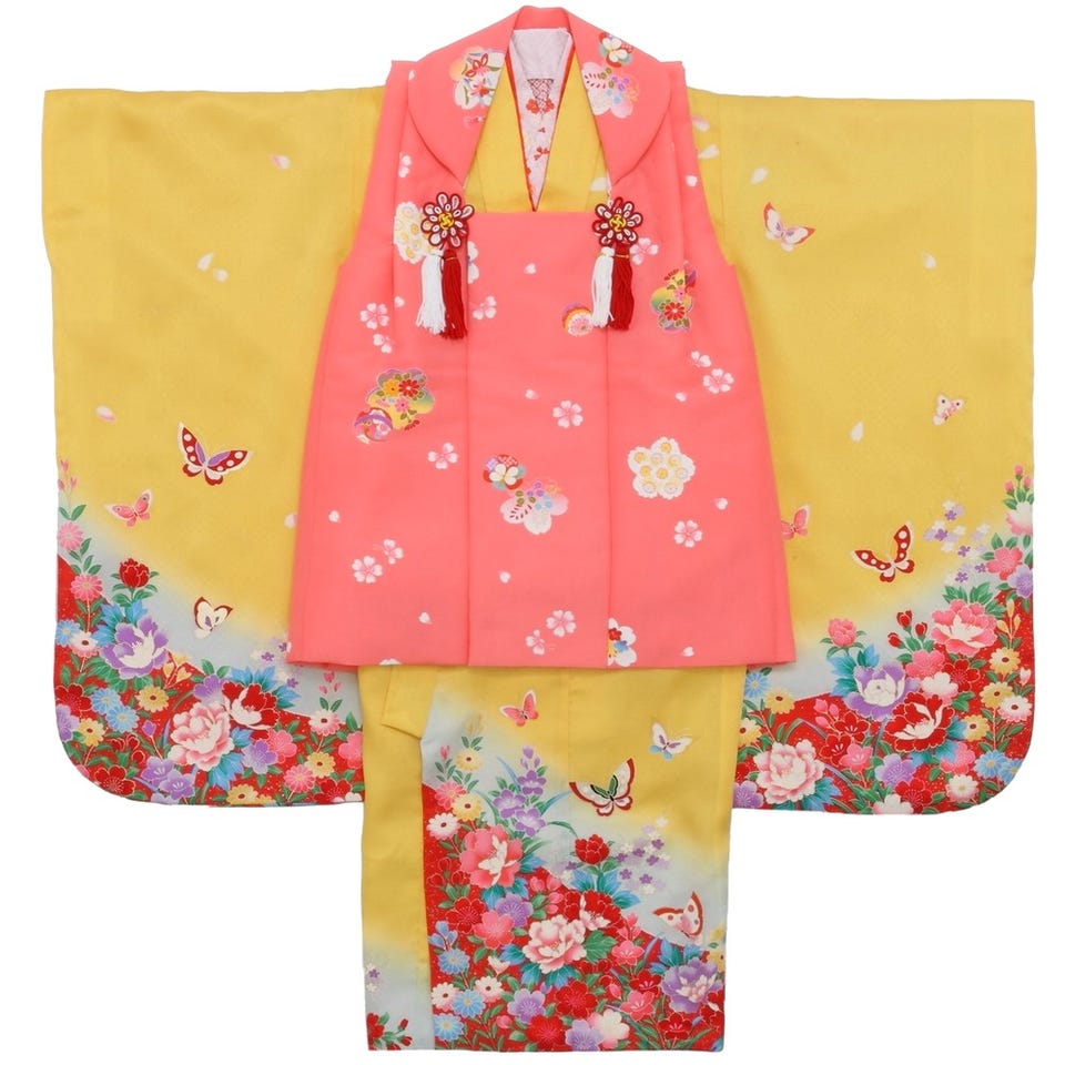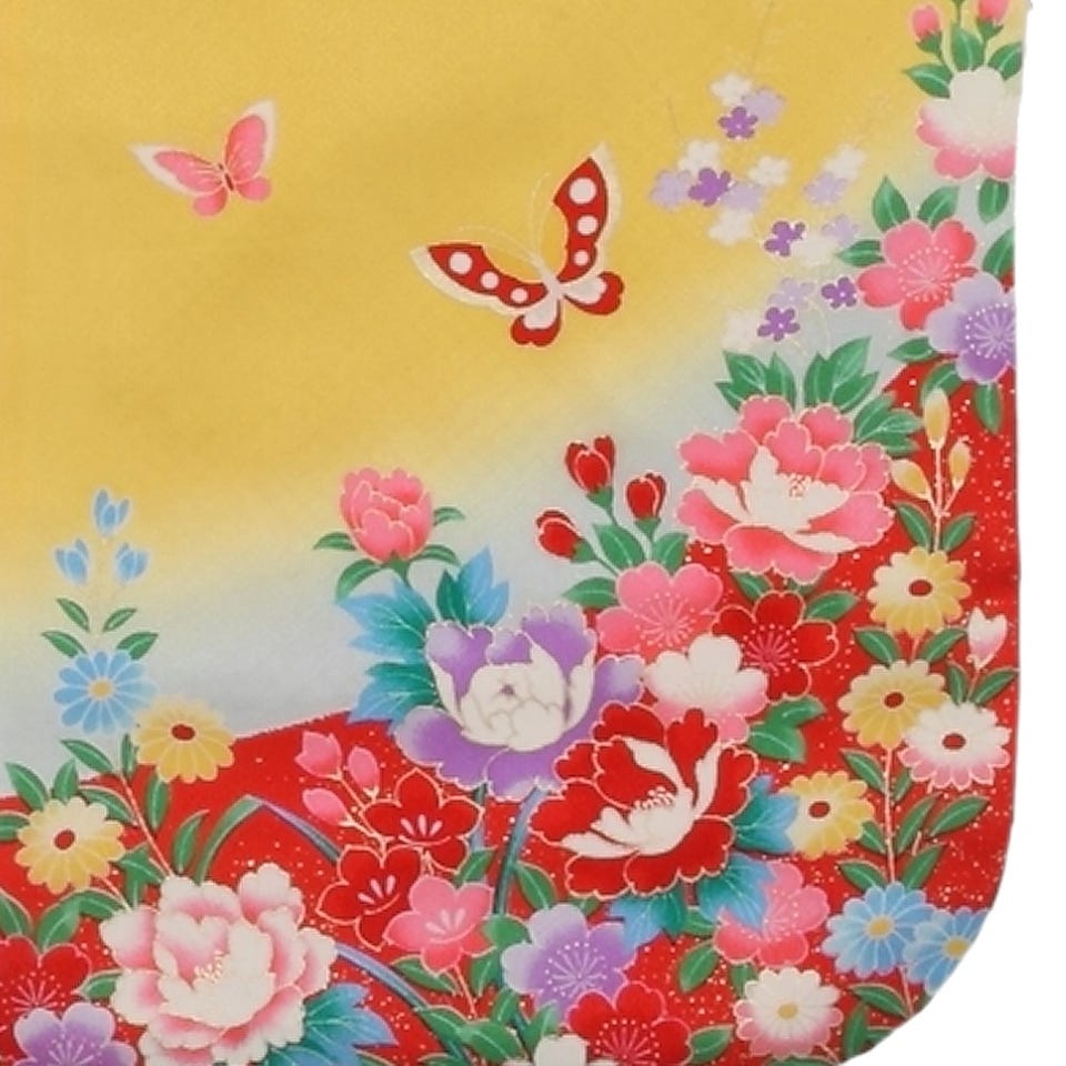 七五三/節句 被布セット 3歳女の子 被布セット 牡丹 お花畑 イエロー