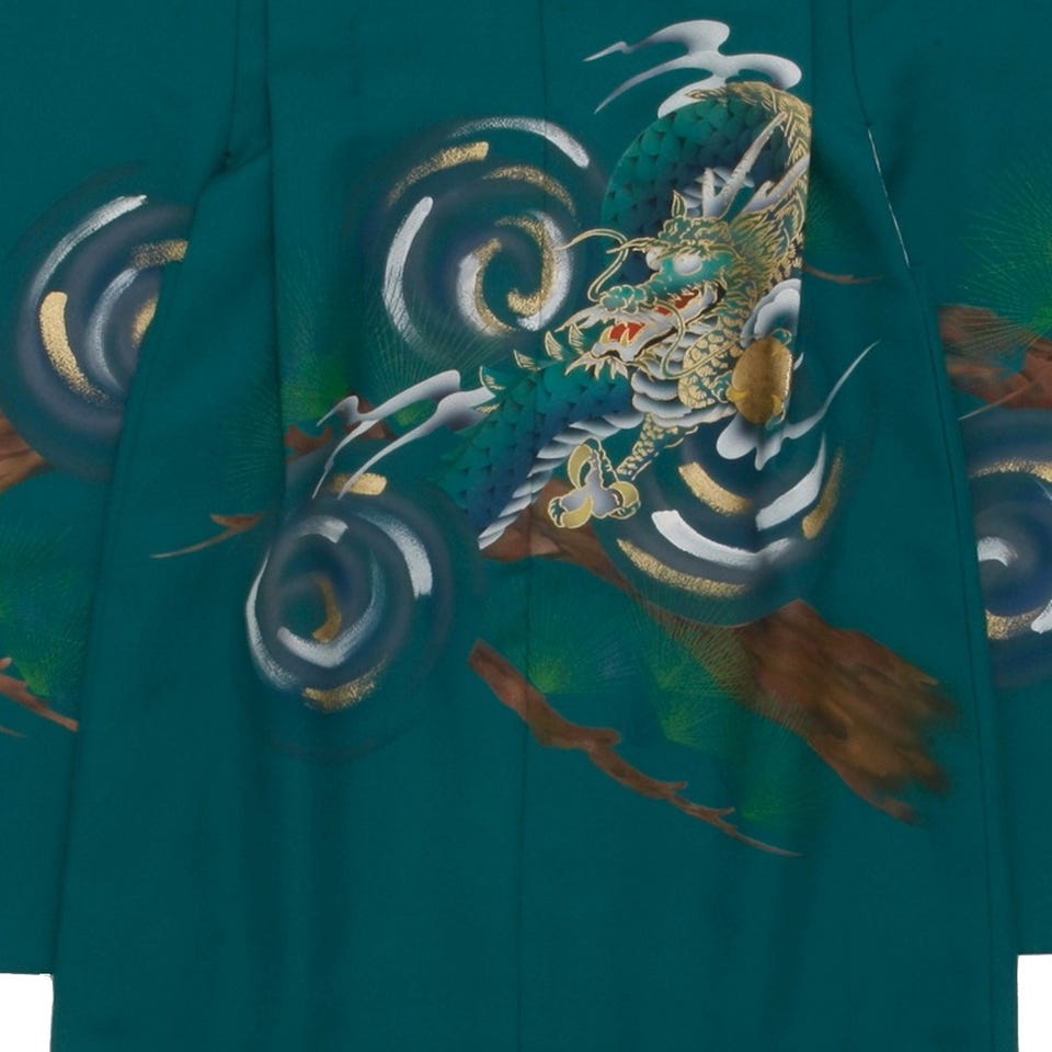 七五三/節句 袴セット 5歳 男の子 雷 龍 グリーン