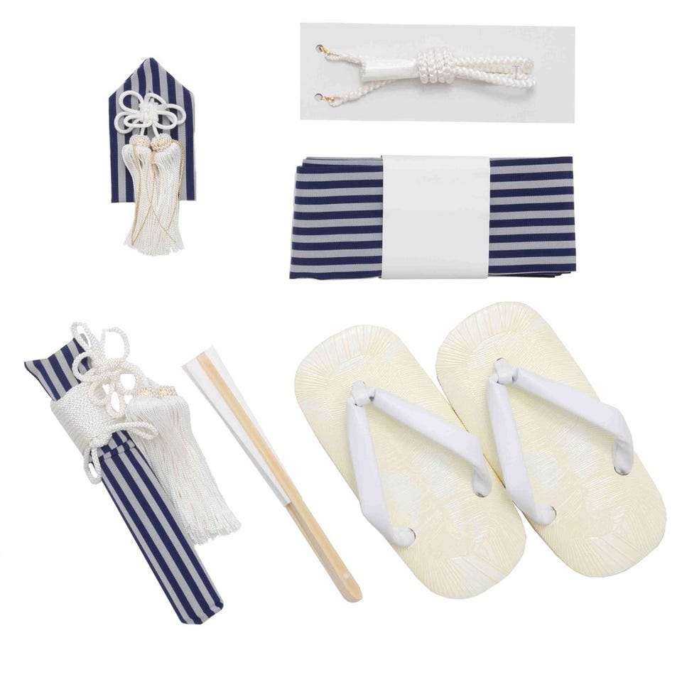 ・袴・羽織・襦袢(半衿つき)・羽織紐・角帯・腰ひも2本・足袋・懐剣・お守り・扇子・雪駄