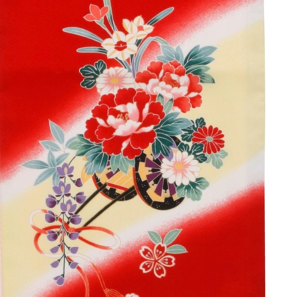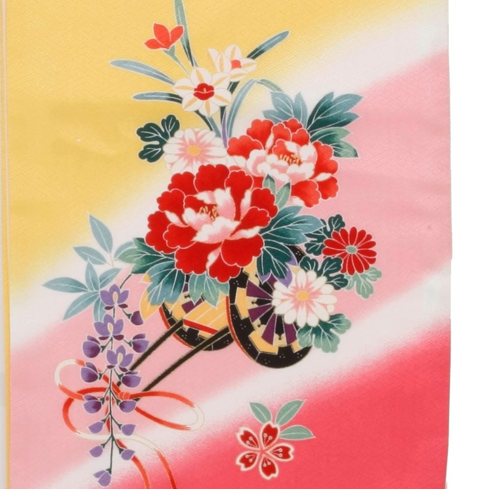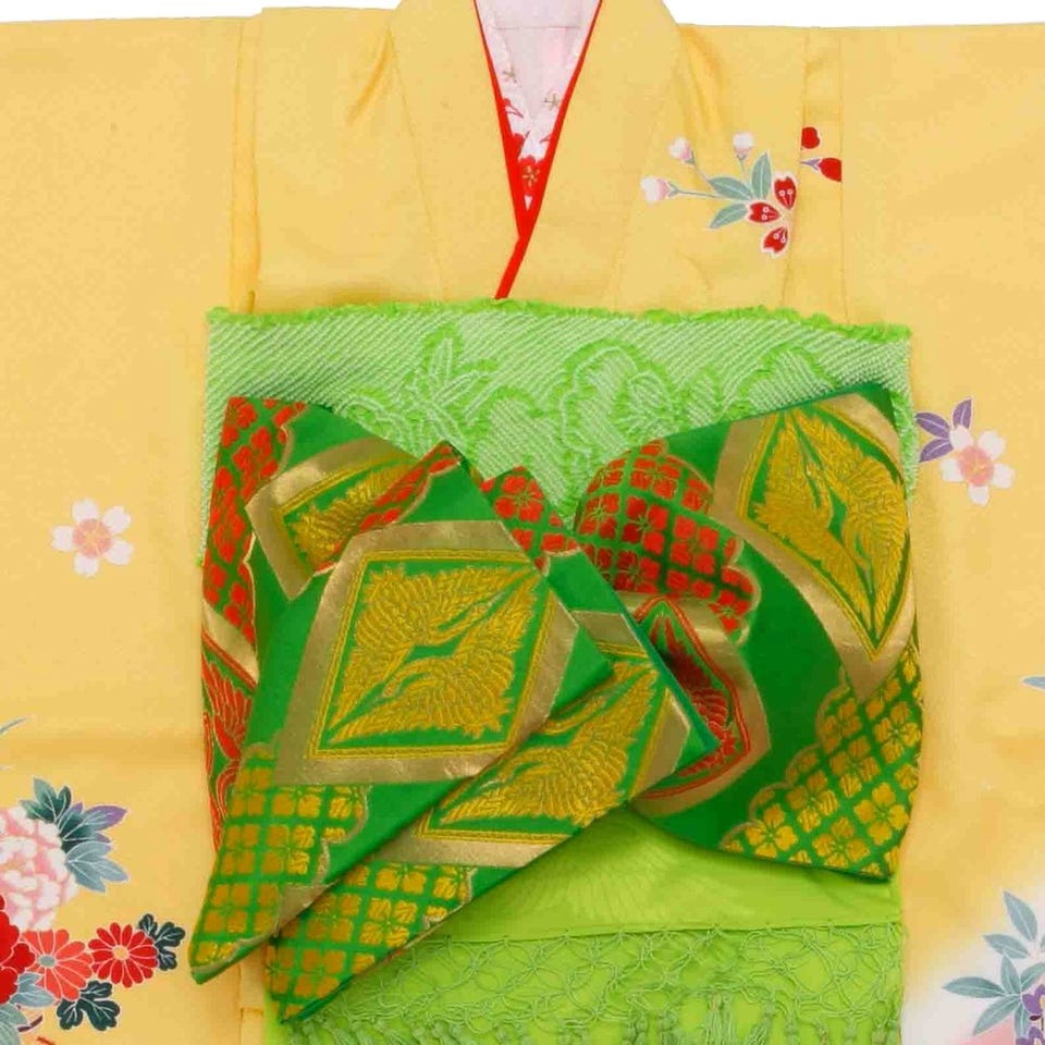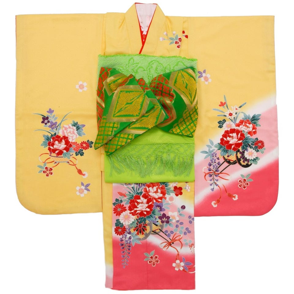 七五三/節句 着物セット 7歳女の子 牡丹 御所車 イエロー