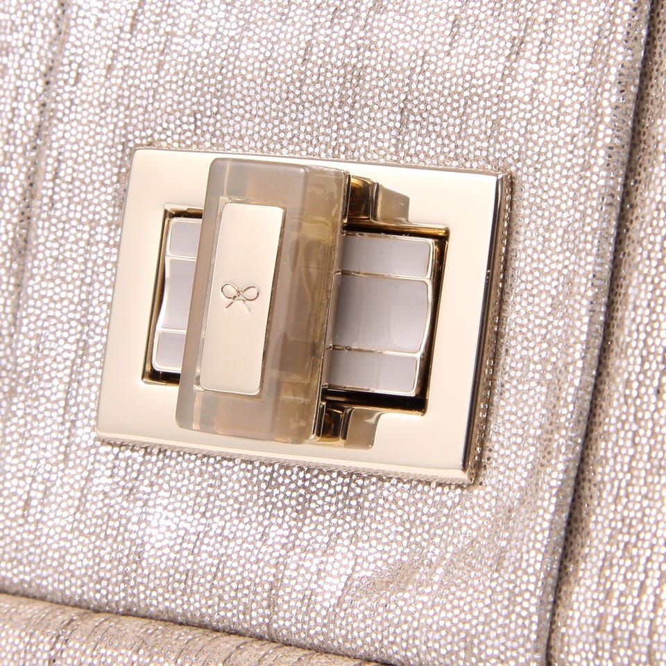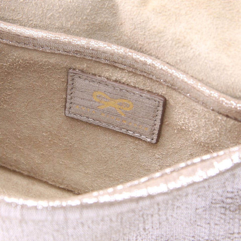 レディース アニヤハインドマーチ ロズリン・ヘアーメタリック・アンスラサイト ショルダーバッグ ベージュ
