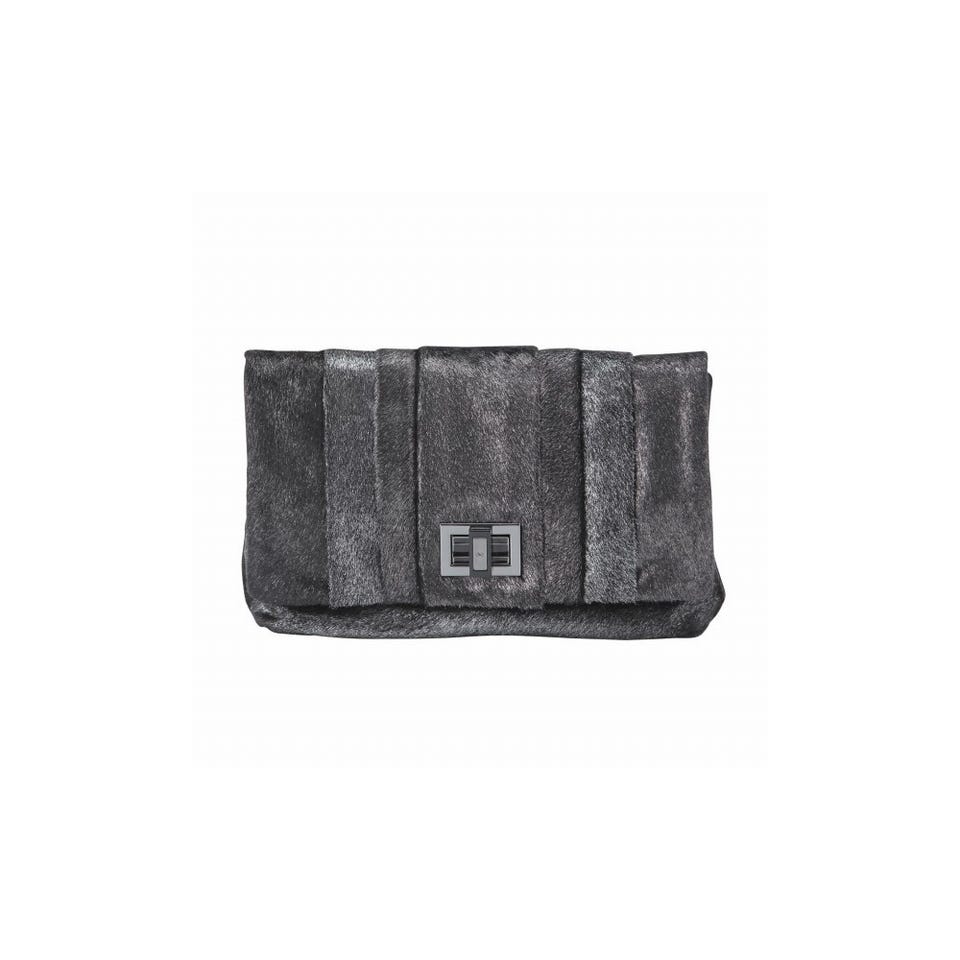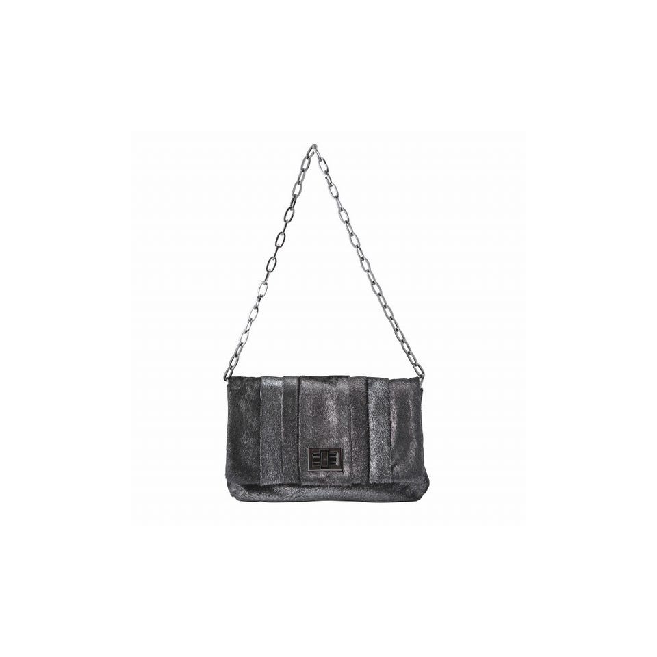メタリックに輝く毛並みが新鮮な「Anya Hindmarch」のショルダーバッグです。直線的でスタイリッシュなデザインが魅力。チェーンのストラップを取り外せば、クラッチバックとして使うこともできます。