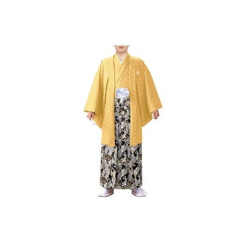 男性袴セット(着物、羽織、袴、和装小物一式) イエロー 5号