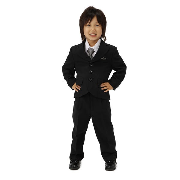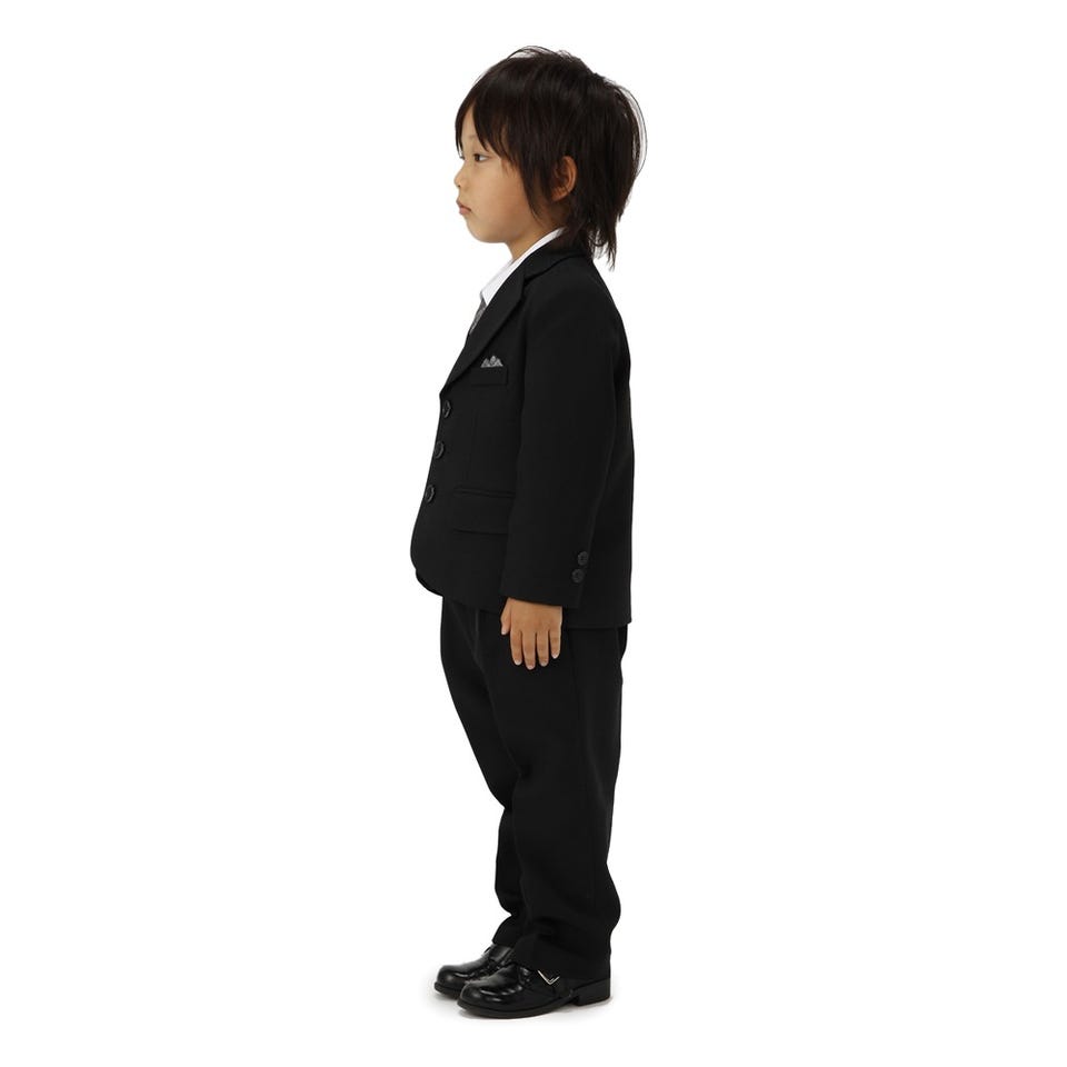 オーソドックスな無地のセットアップスーツにピンストライプ柄のベスト、同色のネクタイやハンカチーフがセットになったアイテム。合わせてスタイリングするだけで上品でフォーマルな着こなしに。パーティーなどのシーンだけでなく、卒業式や入学式にもぴったり。