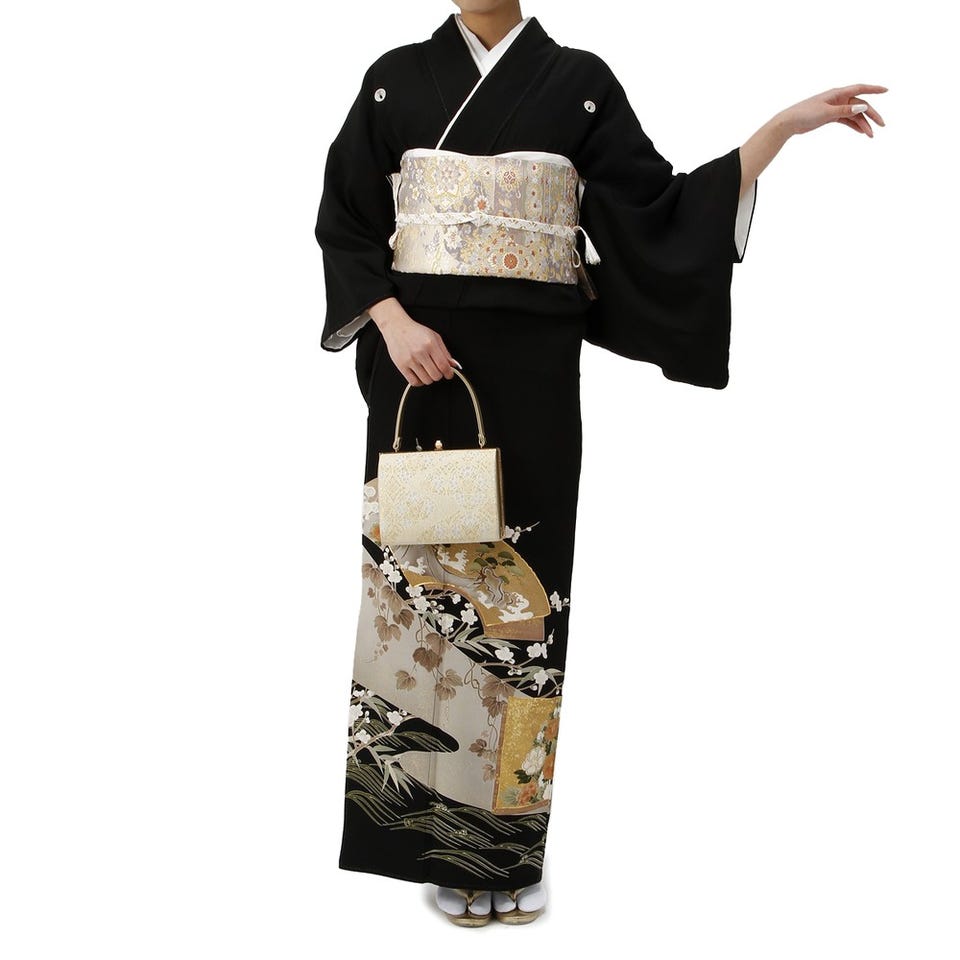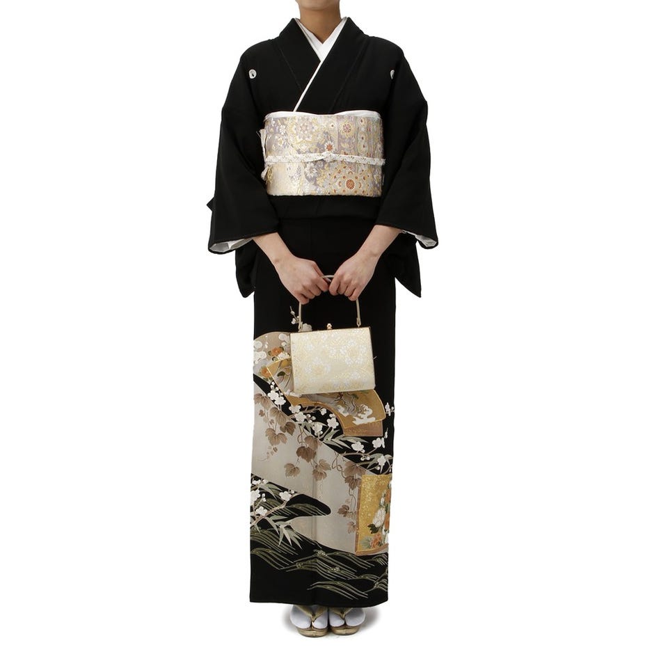 留袖セット 反物柄 (長襦袢、帯、和装小物一式) ブラック Mサイズ