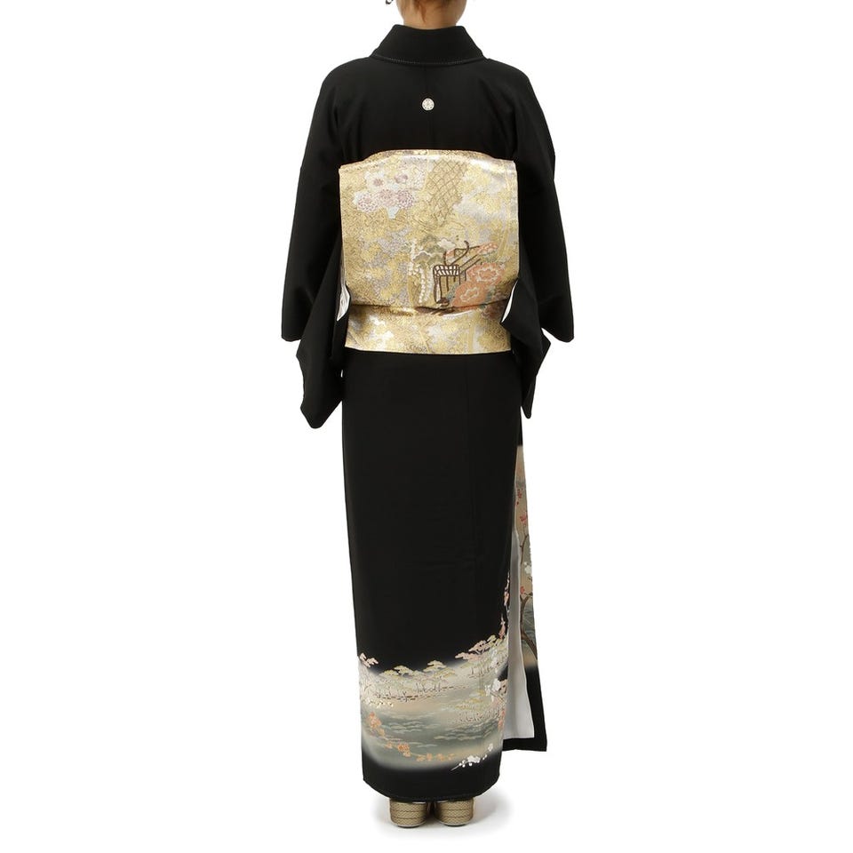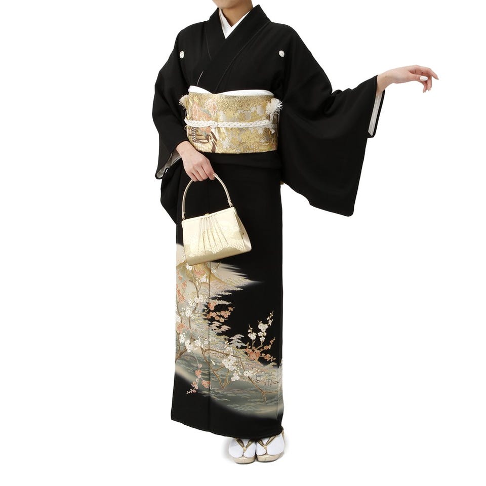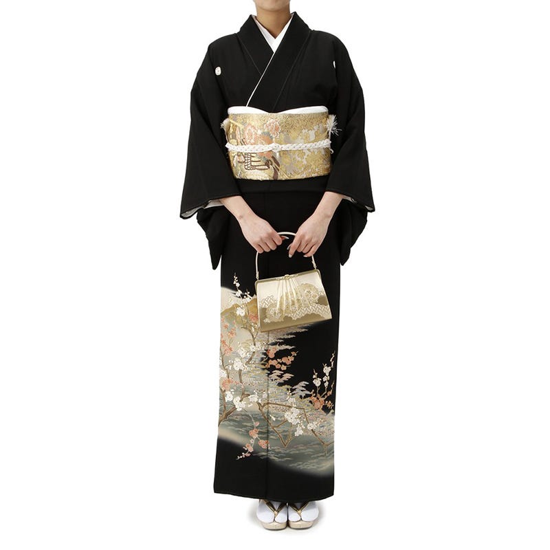 留袖セット 梅柄 (長襦袢、帯、和装小物一式) ブラック Mサイズ