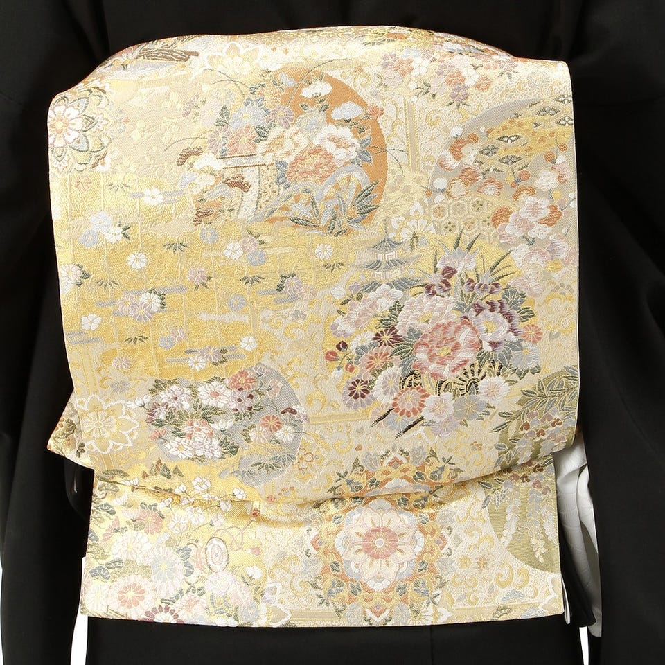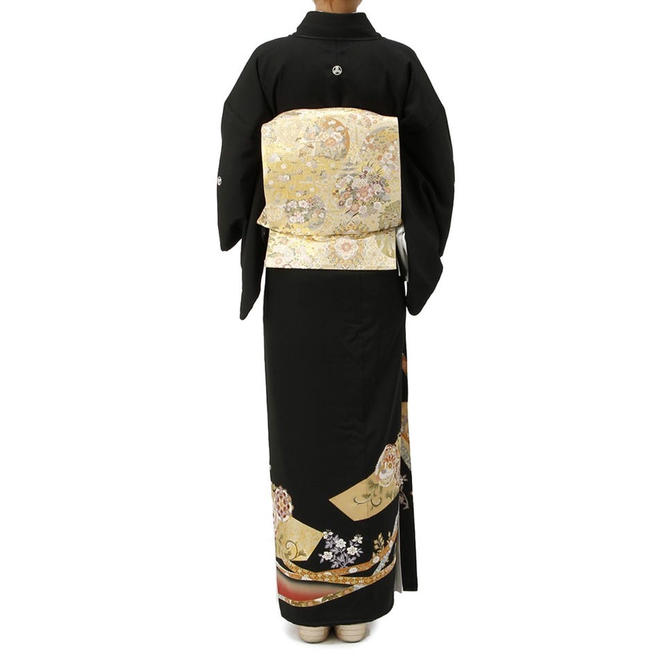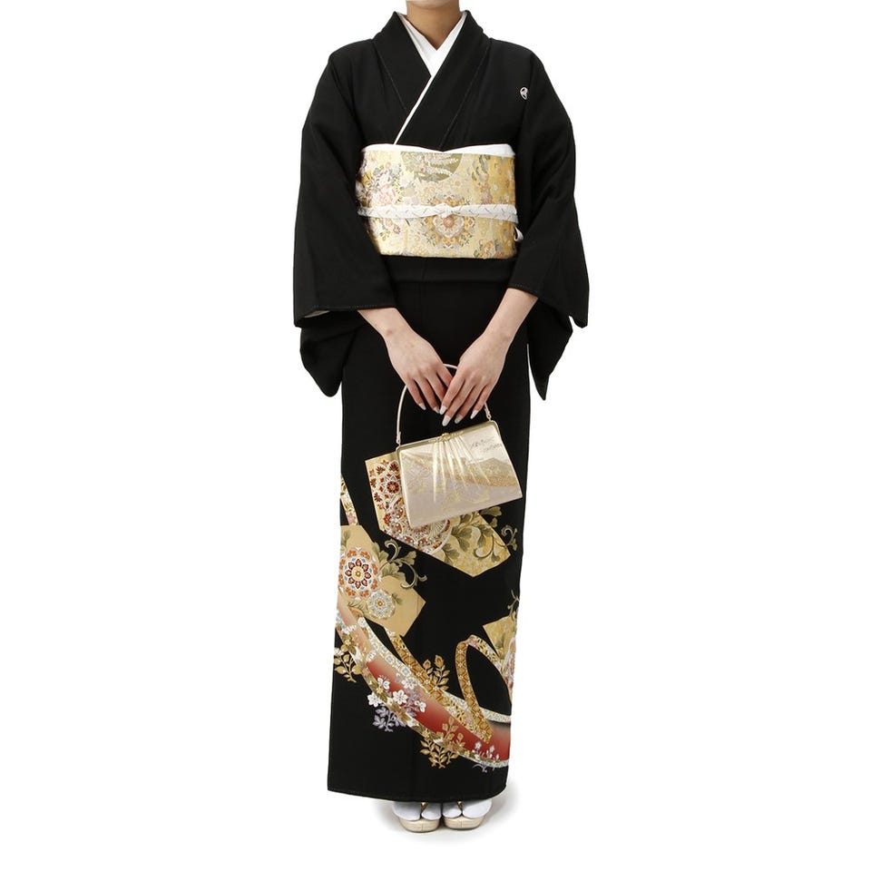 留袖セット 花リボン柄 (長襦袢、帯、和装小物一式) ブラック Lサイズ