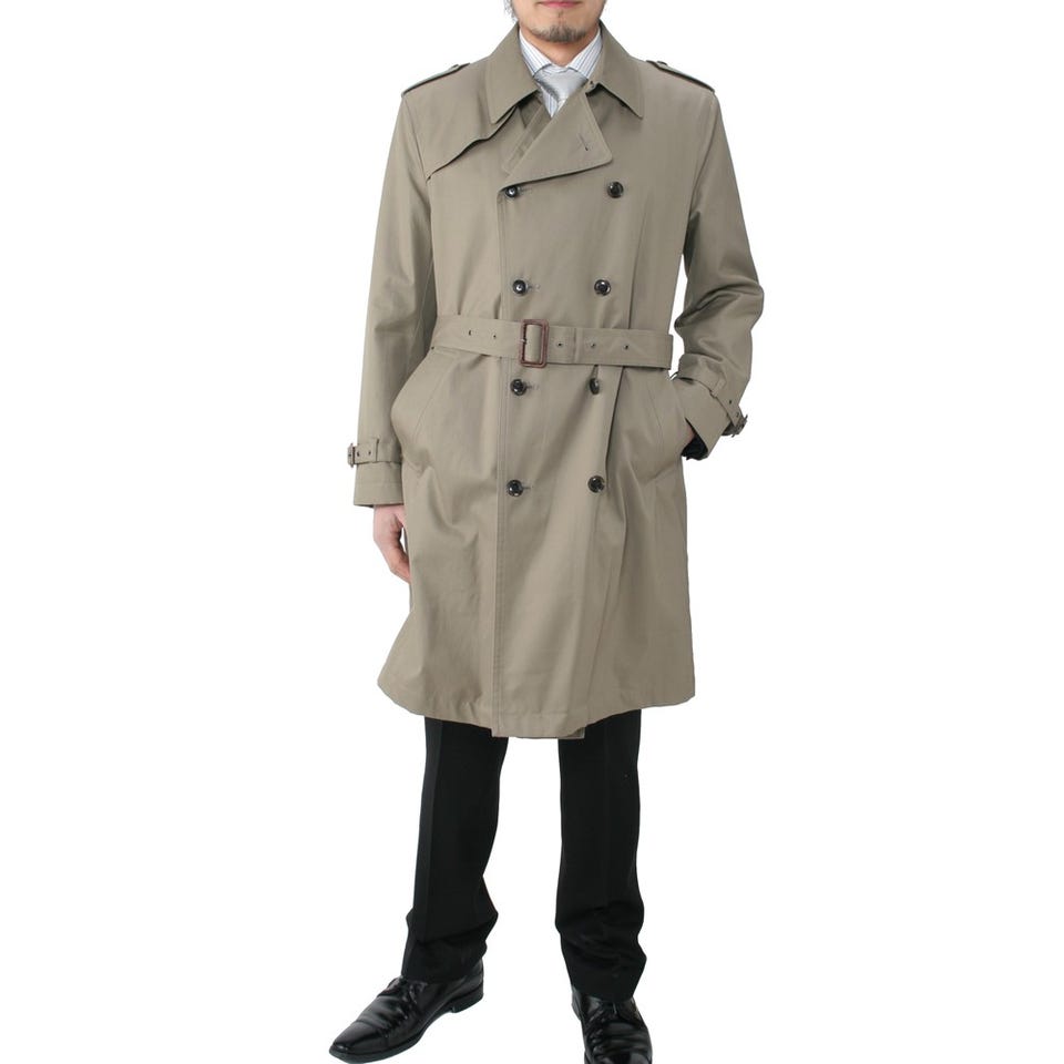 メンズ f-mode ダブル前 ベルト付きトレンチコート ベージュ Lサイズ