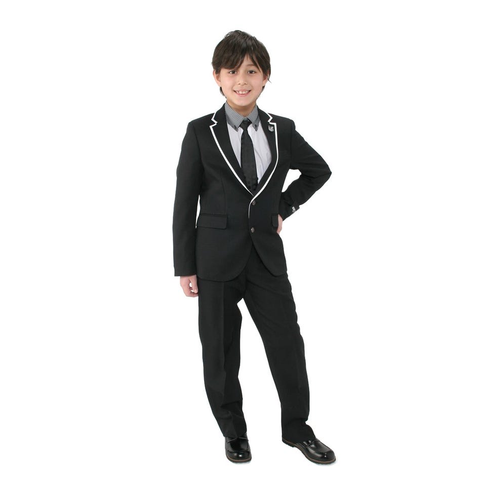 配色のパイピングがオシャレなアクセントになったミチコロンドンのジャケットセット。シャツやネクタイまで揃っているので入学式や卒業式などのイベントにも大活躍すること請け合いです。※シャツやネクタイなど、付属品は画像と異なる場合がございます。