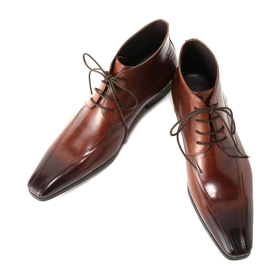 スッキリとしたポインテッドトゥがオシャレなポイントになったハイカットのビジネスシューズ。深みのあるブラウンカラーはベーシックなネイビーやグレーのスーツと合わせるだけでもオシャレな雰囲気に。入学式や卒業式、パーティーなどのイベント時にも重宝しそう。