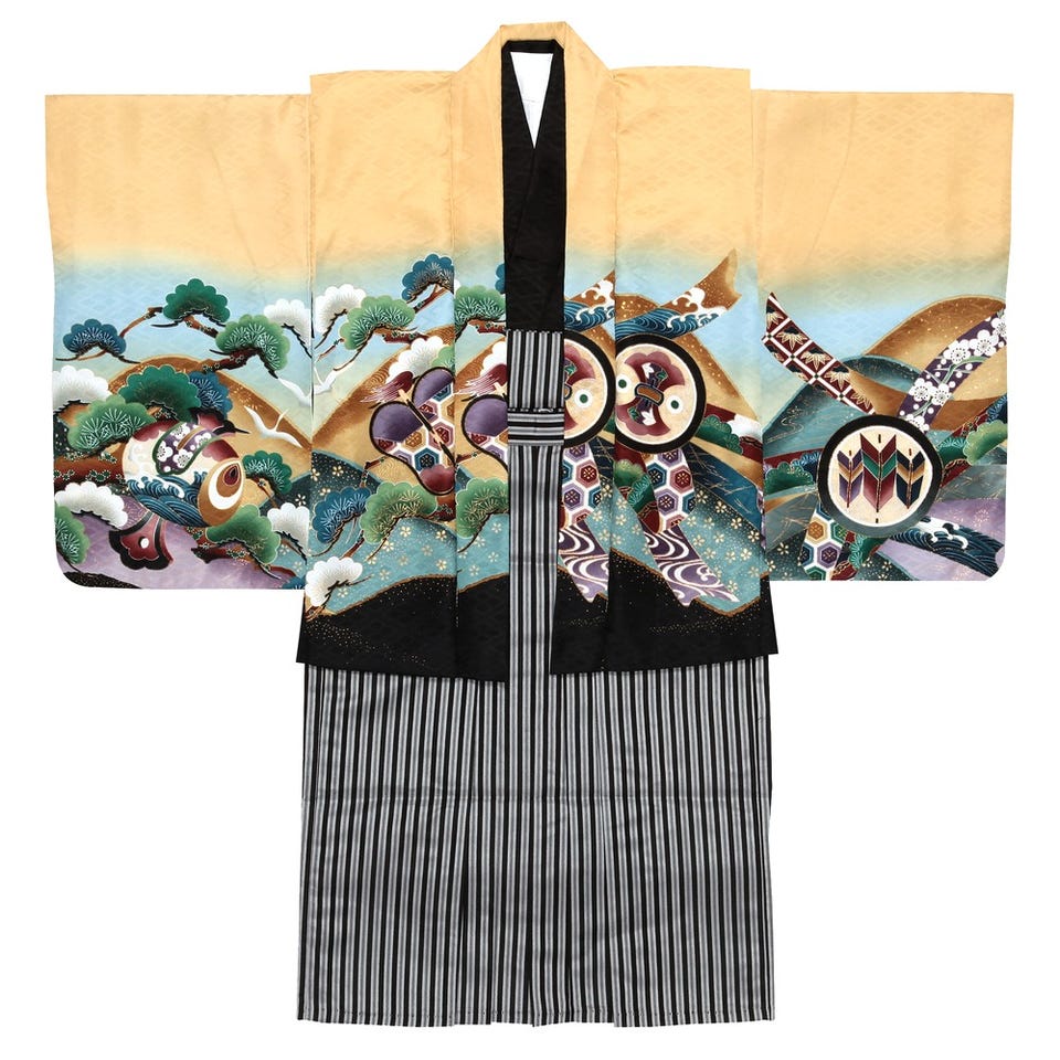 七五三/節句 袴セット 3歳男の子 白鷹 屏風 イエロー