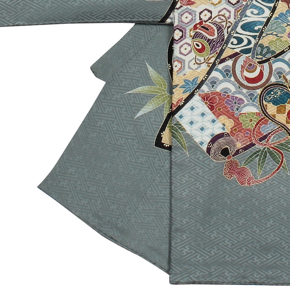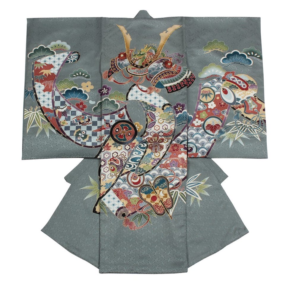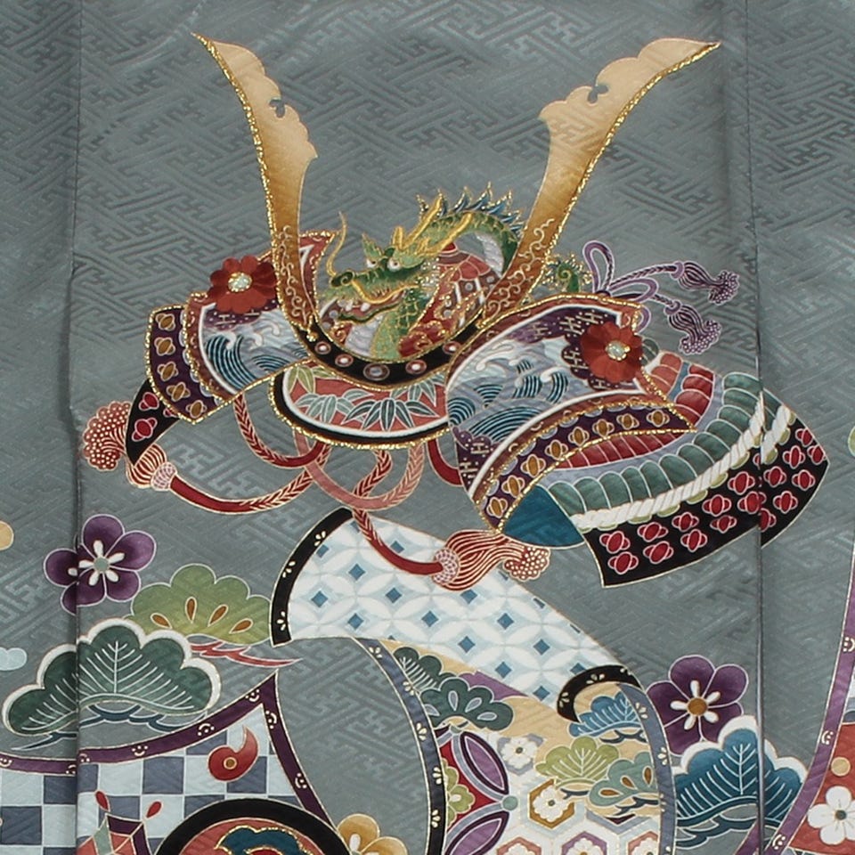 男の子 お宮参り 産着レンタル6点フルセット 正絹 龍 亀甲紋 グレー