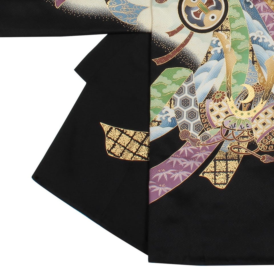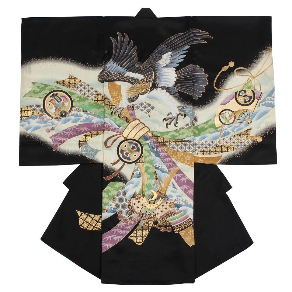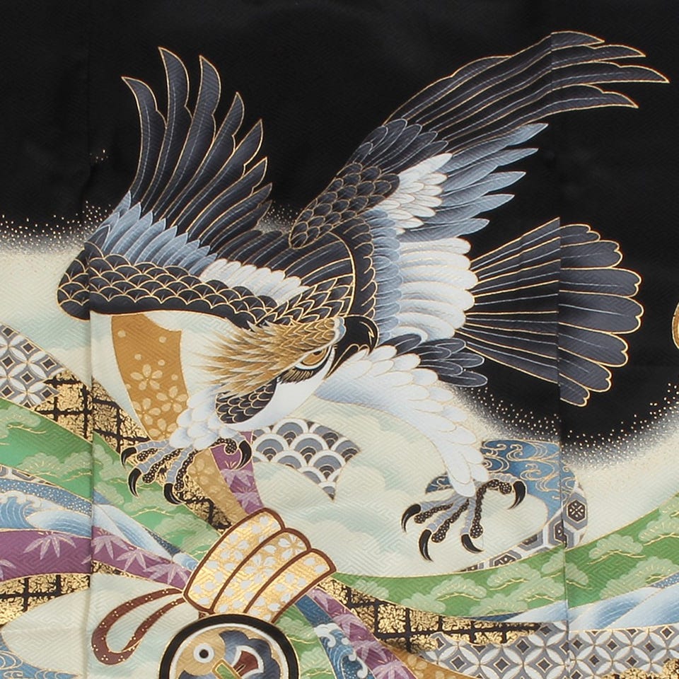 男の子 お宮参り 産着レンタル6点フルセット 正絹 鷹 金 ブラック