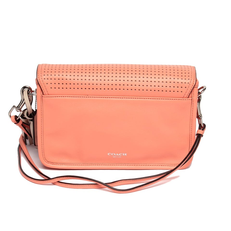 柔らかいカラーリングが優しい印象を与える「COACH」のショルダースクエア型のバッグ。肩紐を外せばクラッチバックとしてモードな使い方も可能です。コンパクトサイズですがマチもあり、しっかりしているので収納力にも期待できます。