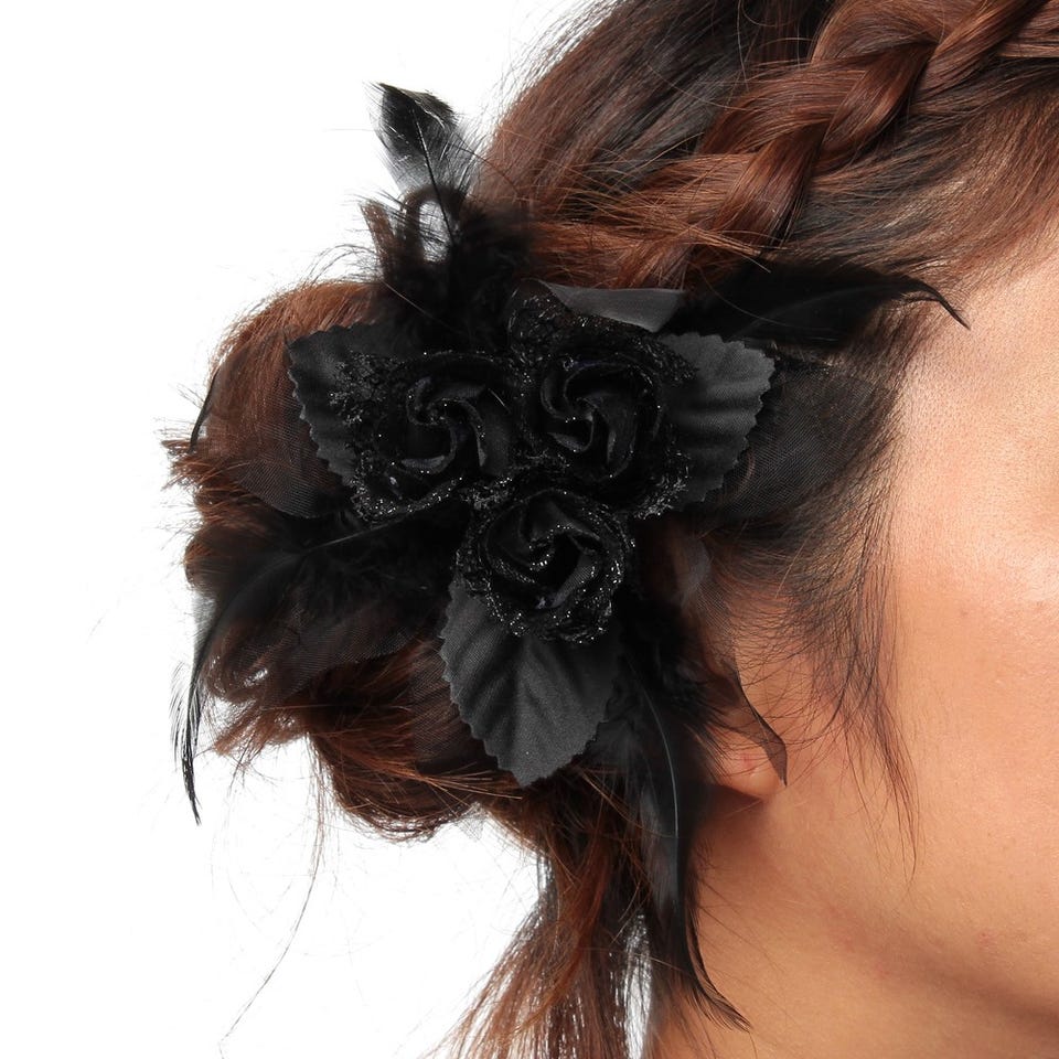 レディース 3ローズデザイン&チュール仕立て コサージュ ブラック