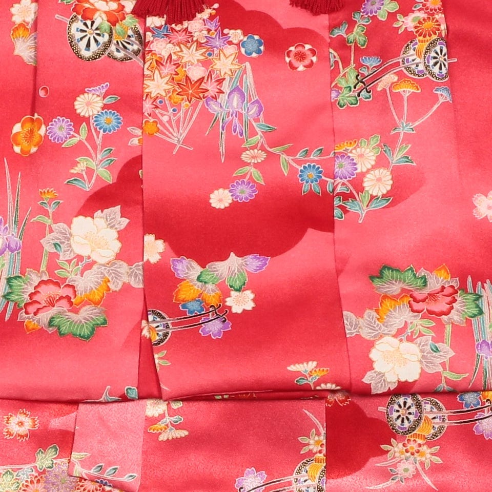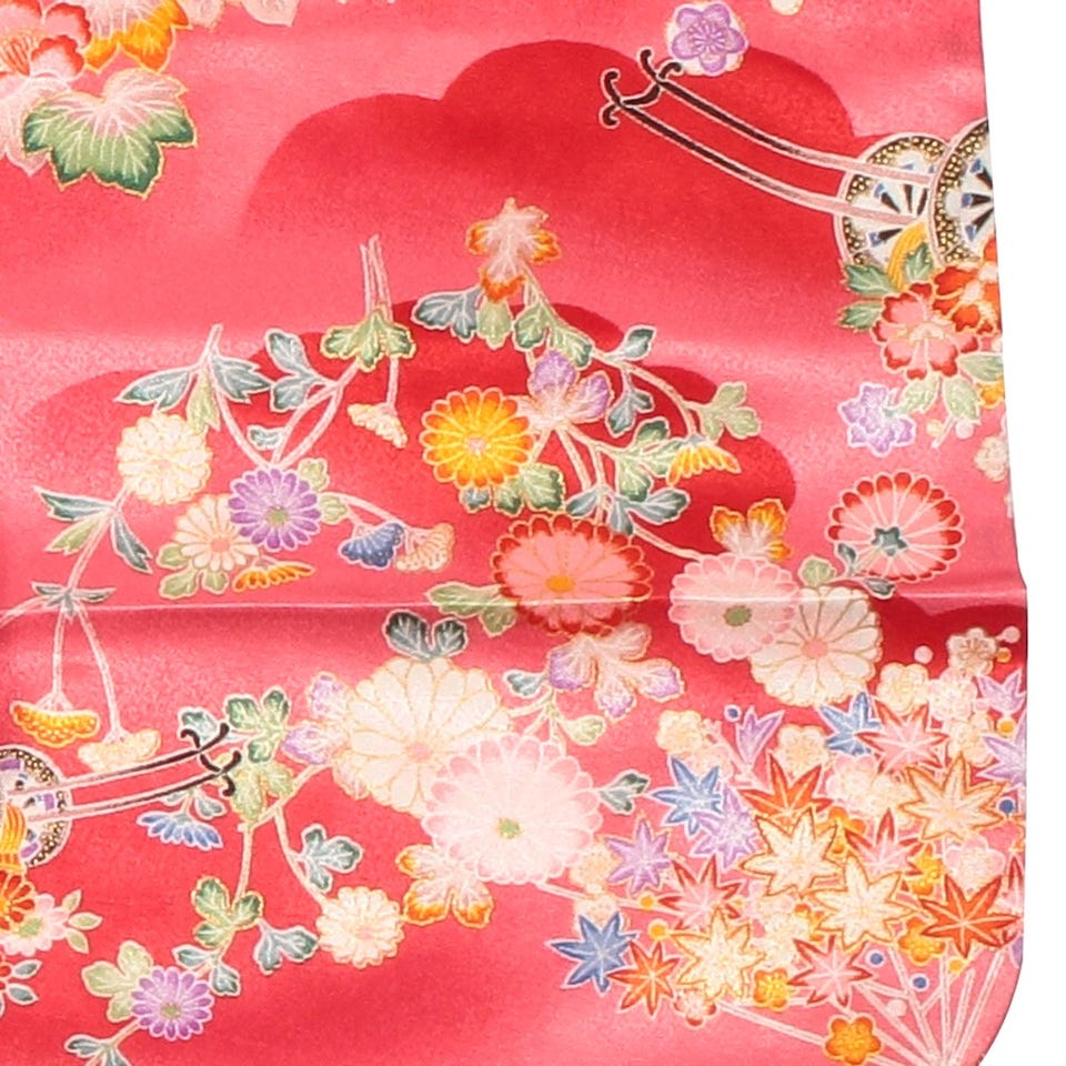 七五三/節句 被布セット 3歳女の子 扇 花車 レッド
