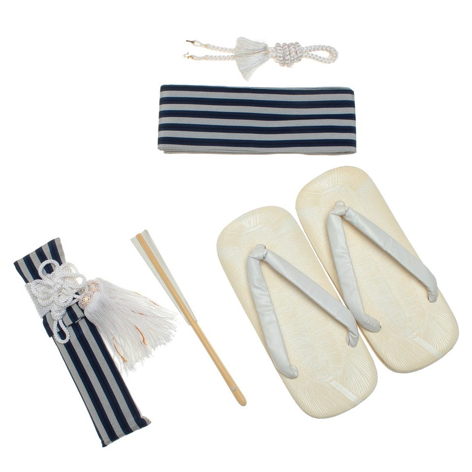 ■袴セット・袴・羽織・襦袢(半衿つき)・羽織紐・角帯・腰ひも2本・足袋■小物セット・懐剣・お守り・扇子・雪駄お守りは付属されない場合があります。