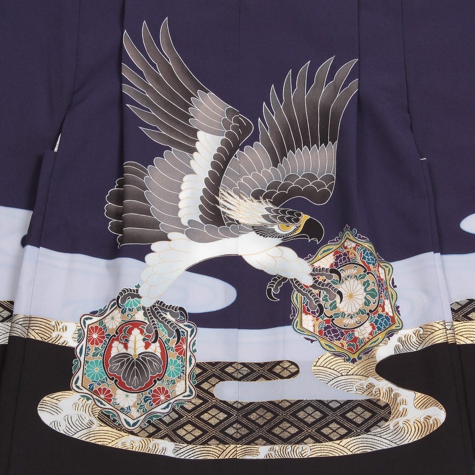 七五三/節句 袴セット 5歳 男の子 モダン柄 鷹 ネイビー