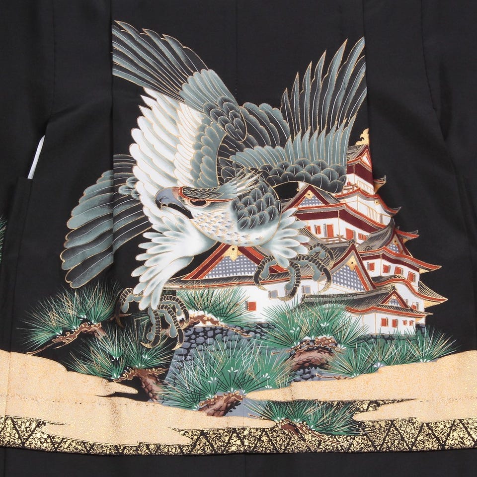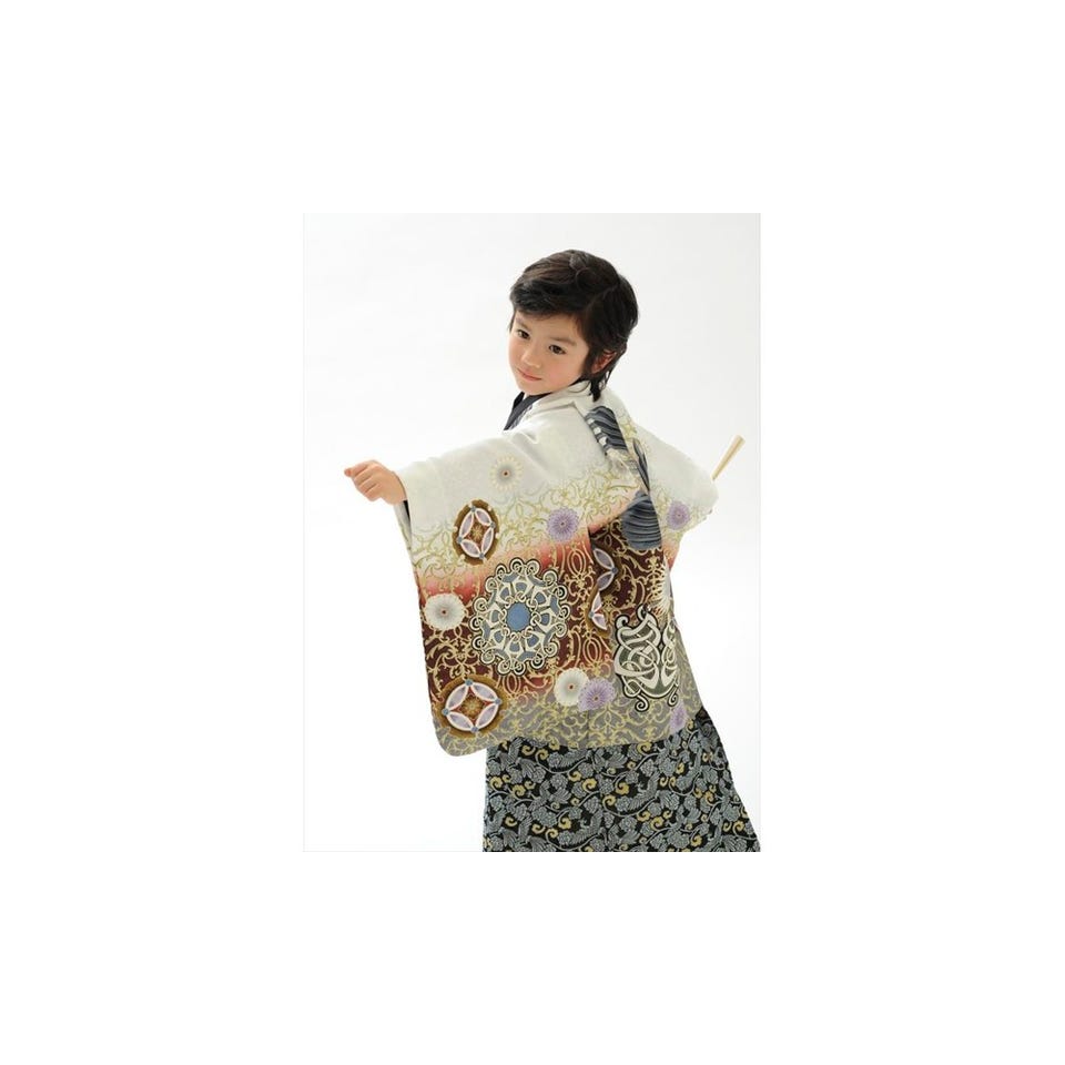 七五三/節句 袴セット 5歳 男の子 鷹 金色 選べる2色(白 / 黒) ホワイト