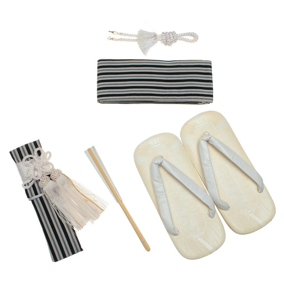 ■袴セット・袴・羽織・襦袢(半衿つき)・羽織紐・角帯・腰ひも2本・足袋■小物セット・懐剣・お守り・扇子・雪駄お守りは付属されない場合があります。