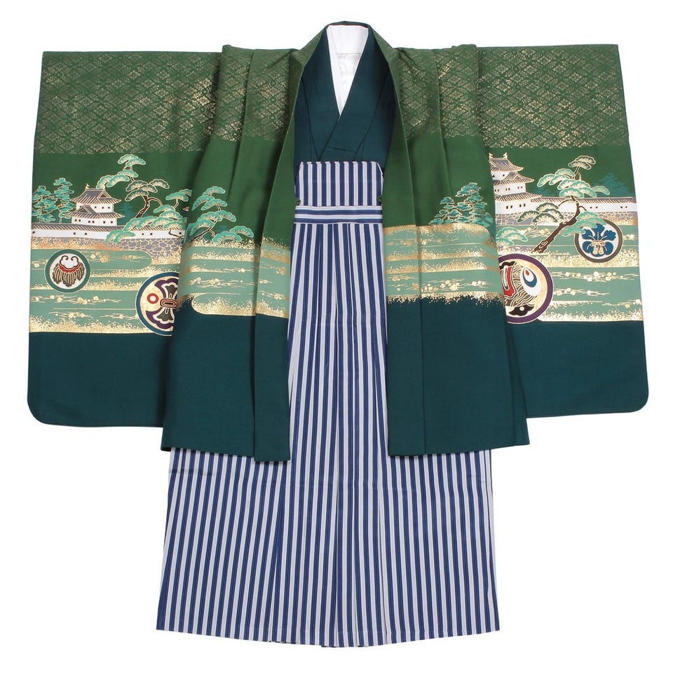 七五三/節句 袴セット 5歳 男の子 松 城 グリーン
