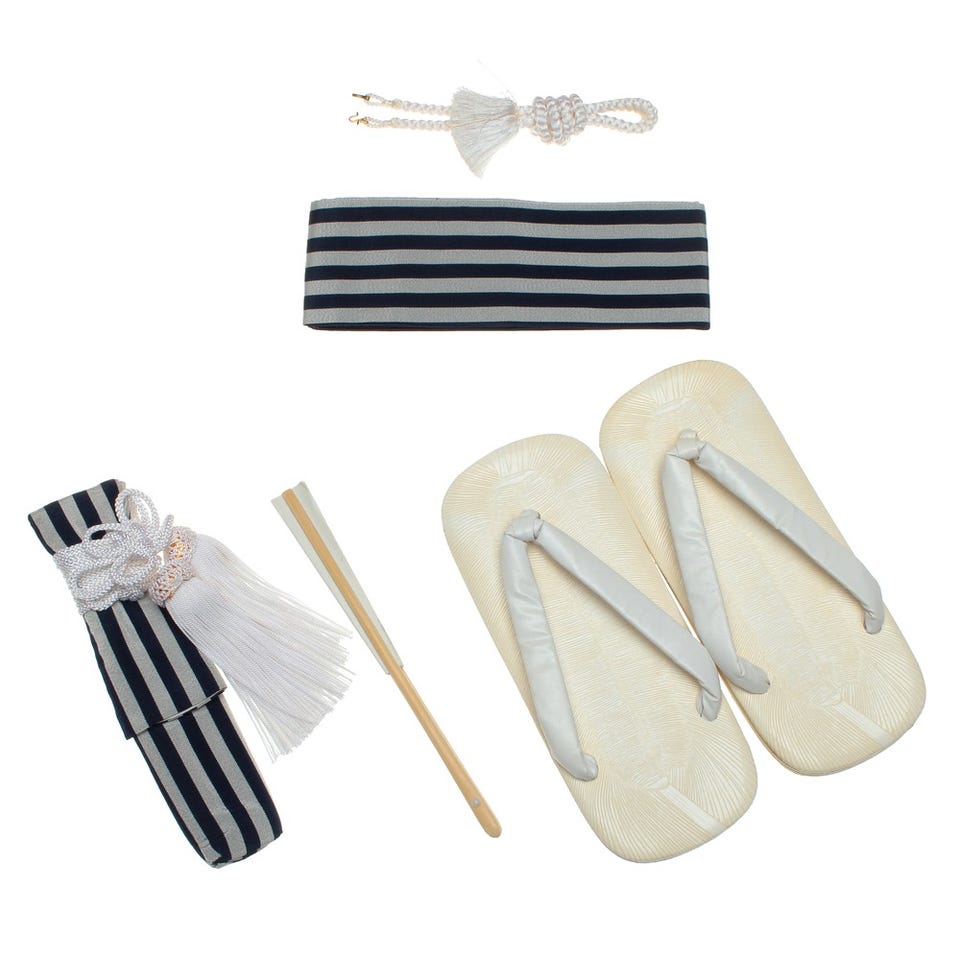 ■袴セット・袴・羽織・襦袢(半衿つき)・羽織紐・角帯・腰ひも2本・足袋■小物セット・懐剣・お守り・扇子・雪駄お守りは付属されない場合があります。
