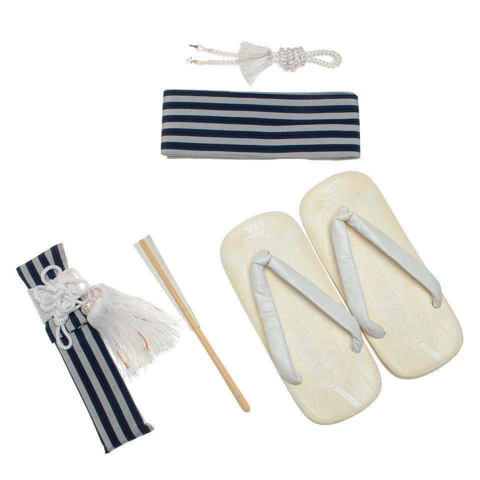 ■袴セット・袴・羽織・襦袢(半衿つき)・羽織紐・角帯・腰ひも2本・足袋■小物セット・懐剣・お守り・扇子・雪駄お守りは付属されない場合があります。