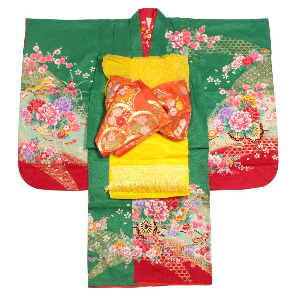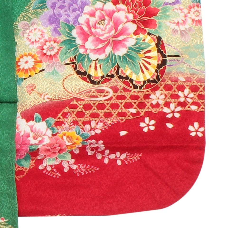 七五三/節句 着物セット 7歳女の子 牡丹柄 華美 グリーン