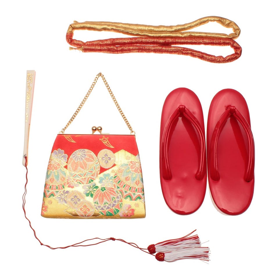 ■着物セット・着物・帯・長襦袢(半衿つき)・帯揚・兵児帯(しごき)・腰ひも4本・伊達締め・足袋・肌襦袢・三重紐・裾除け■箱迫セット・帯締め・御びら簪・バッグ・草履・箱せこ・扇子