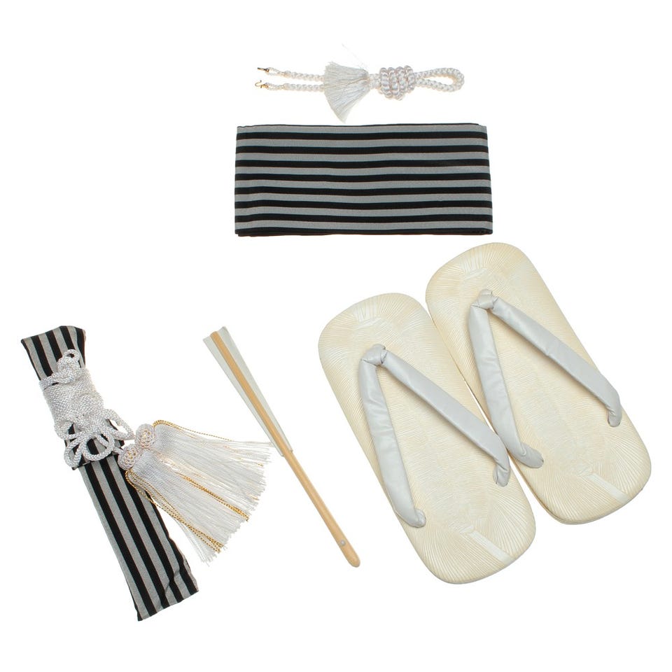■袴セット・袴・羽織・襦袢(半衿つき)・羽織紐・角帯・腰ひも2本・足袋■小物セット・懐剣・お守り・扇子・雪駄お守りは付属されない場合があります。