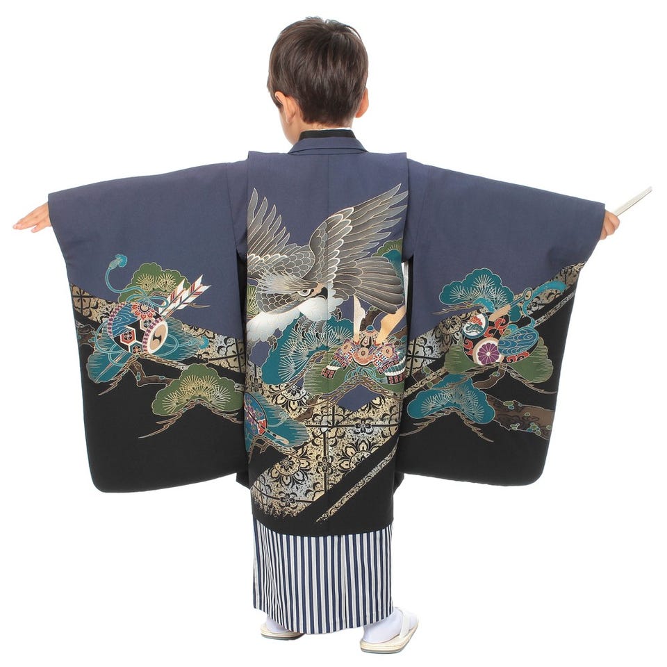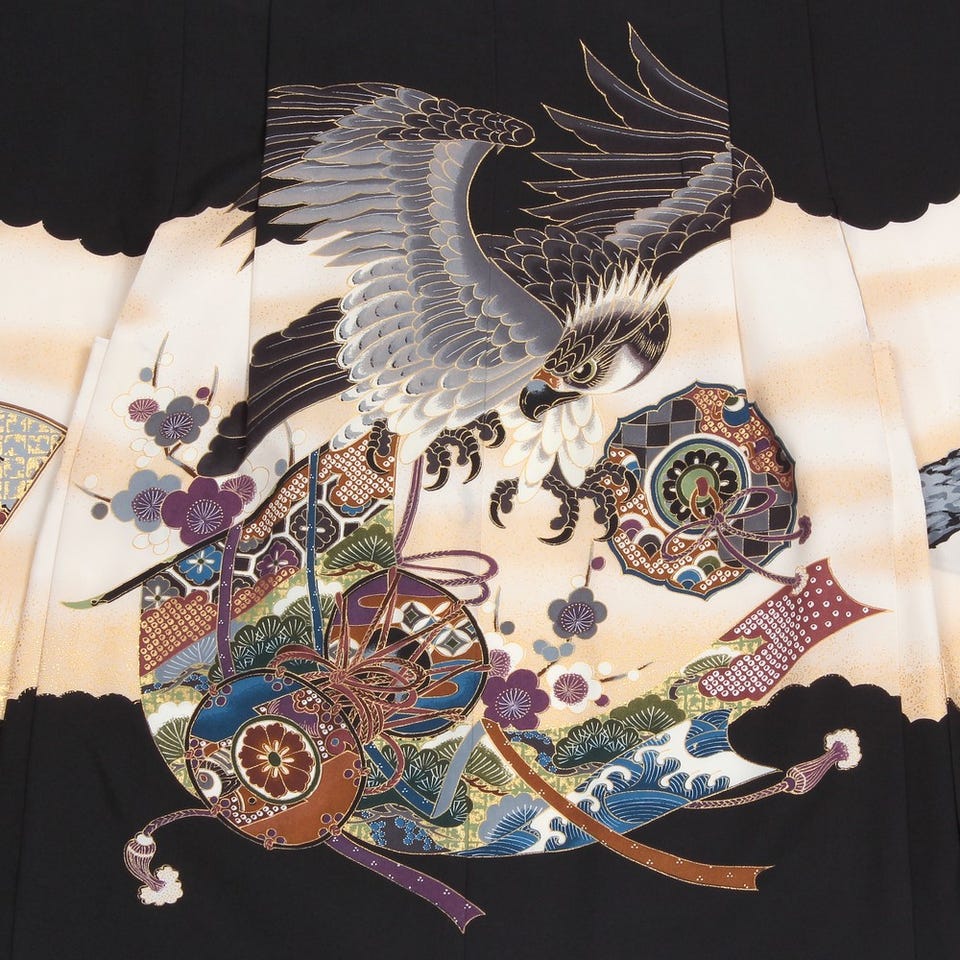 七五三/節句 袴セット 5歳 男の子 鷹 鼓 ブラック