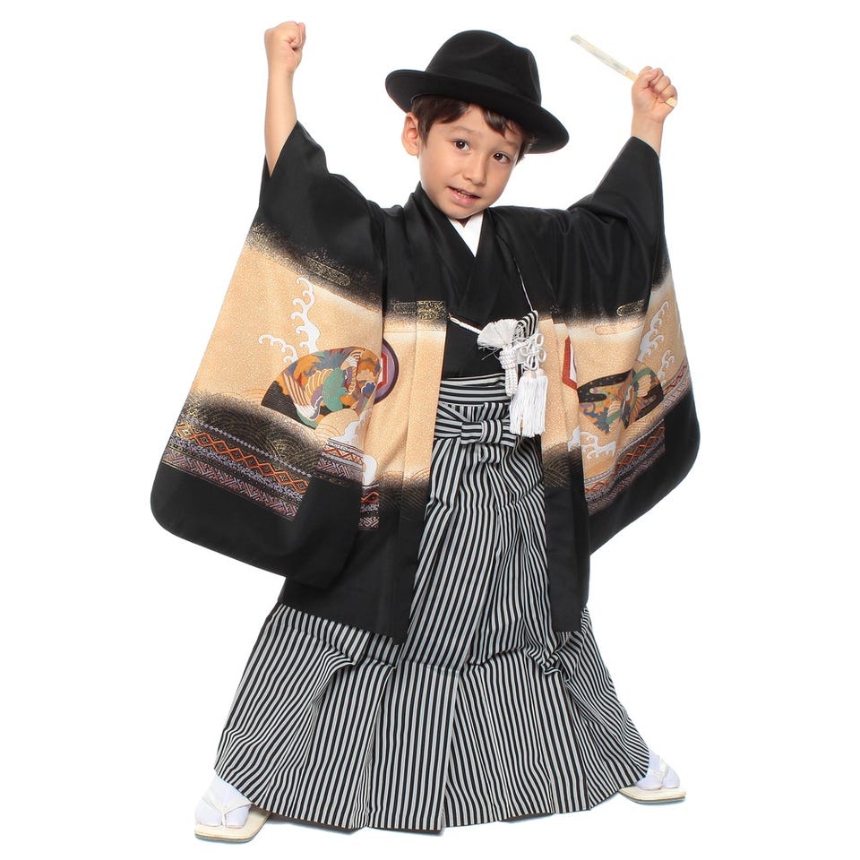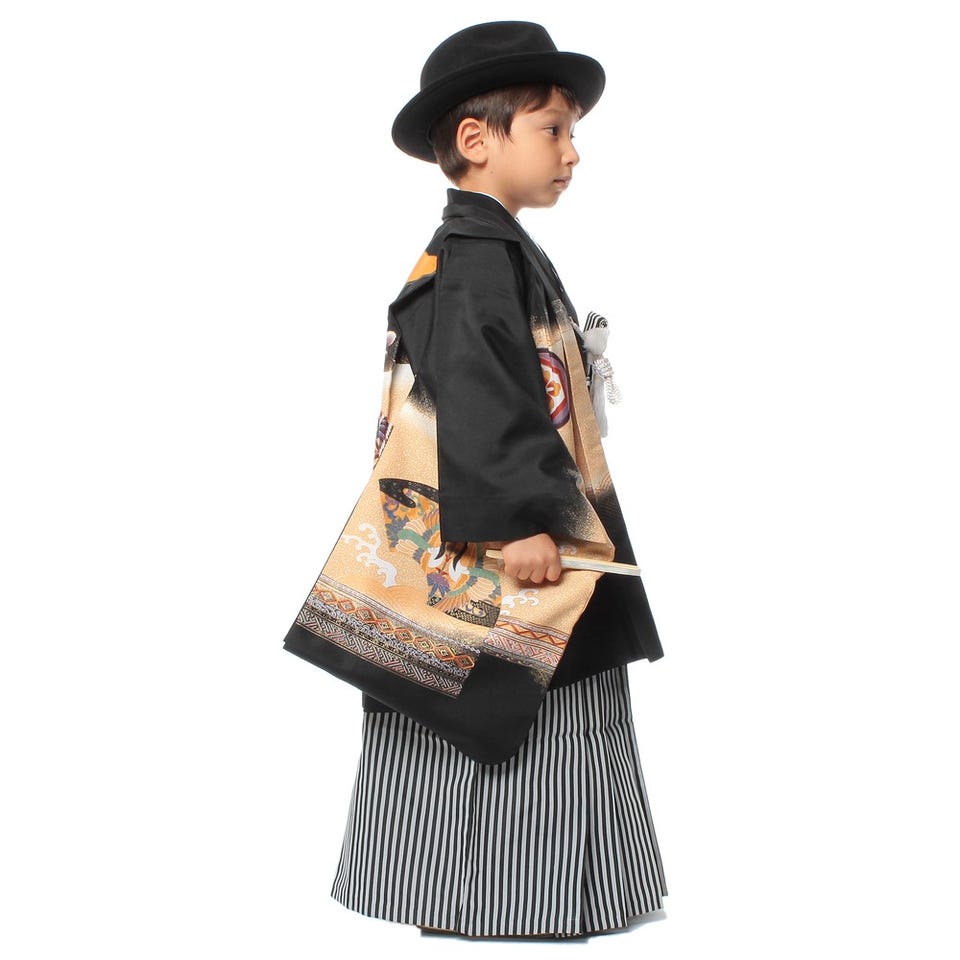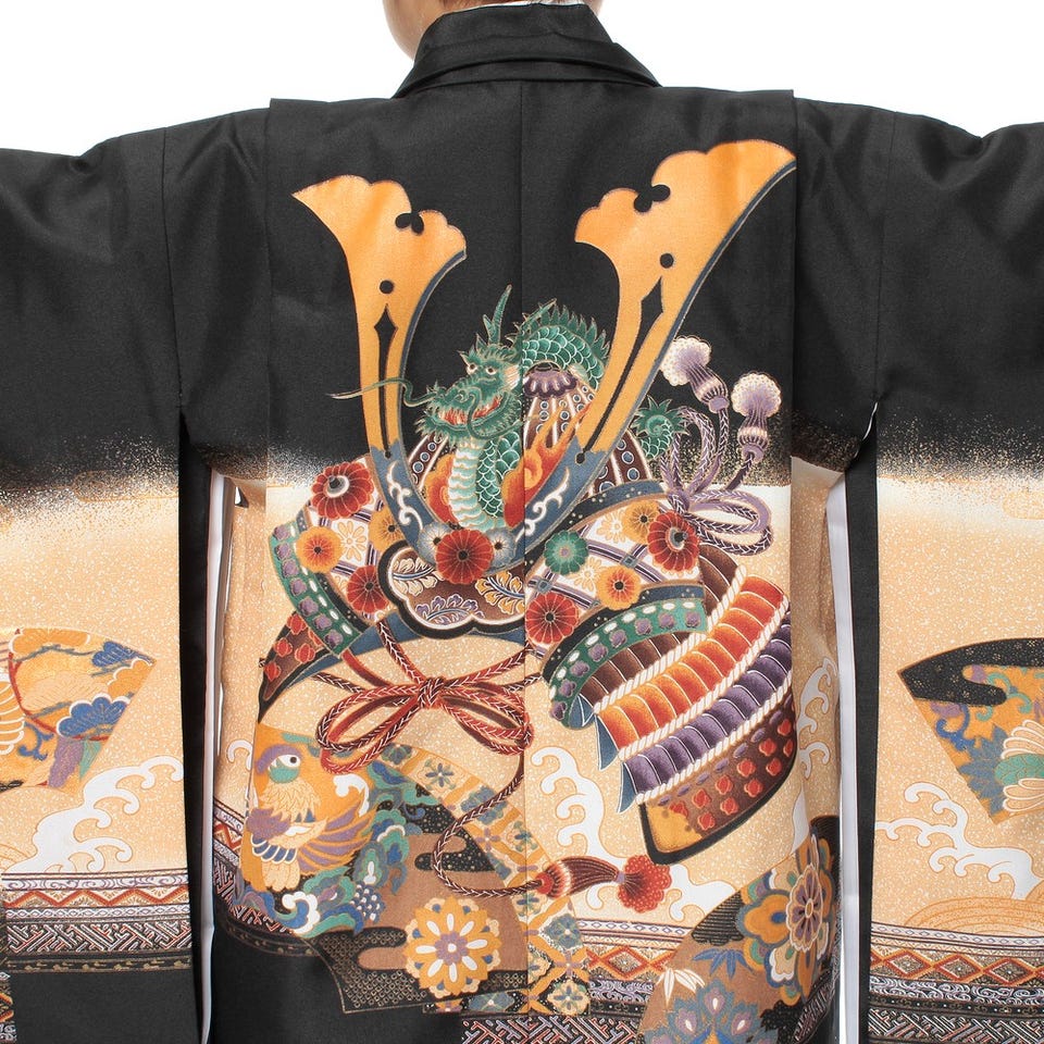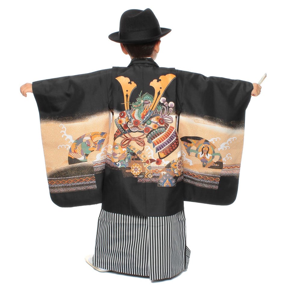 七五三/節句 袴セット 5歳 男の子 金色模様 兜 ブラック