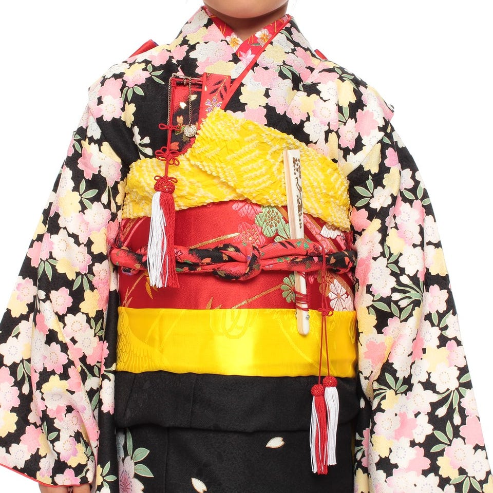 七五三/節句 着物セット 7歳女の子 満開桜 華麗 ブラック