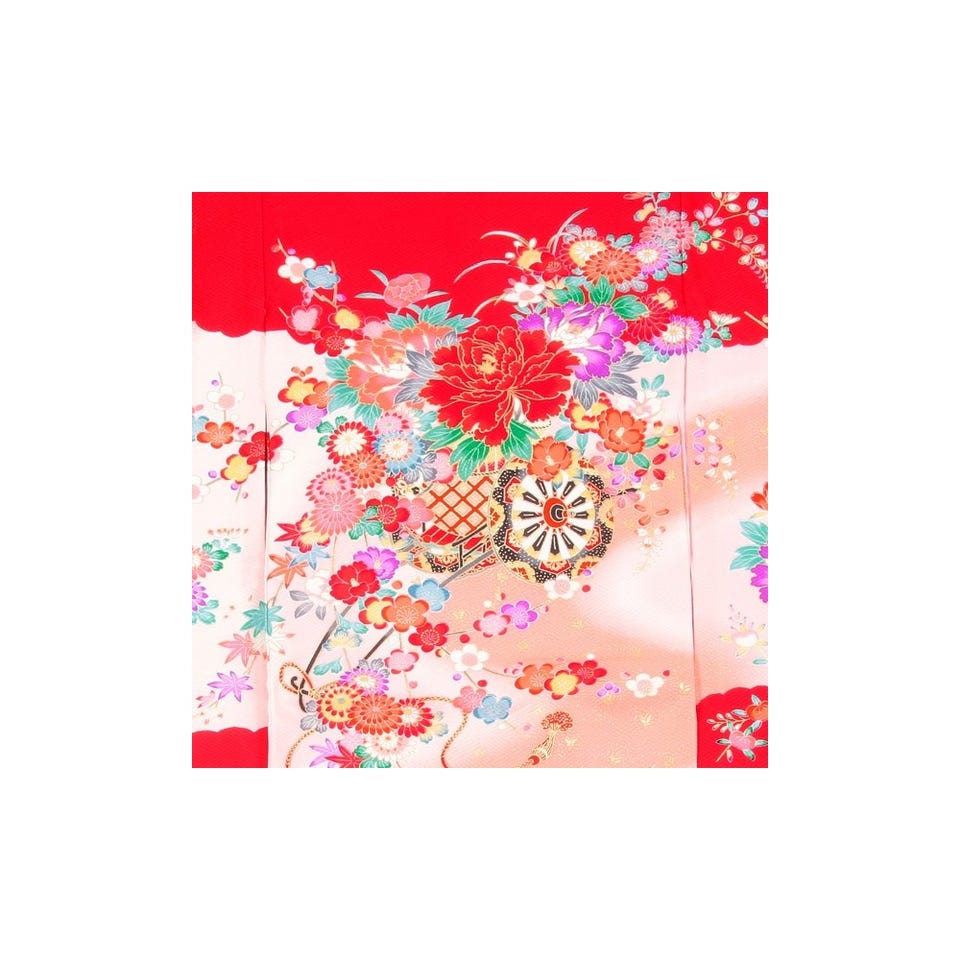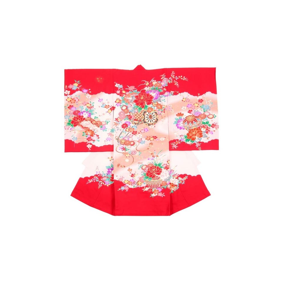女の子 お宮参り 産着レンタル6点フルセット 正絹 花車 優雅 レッド