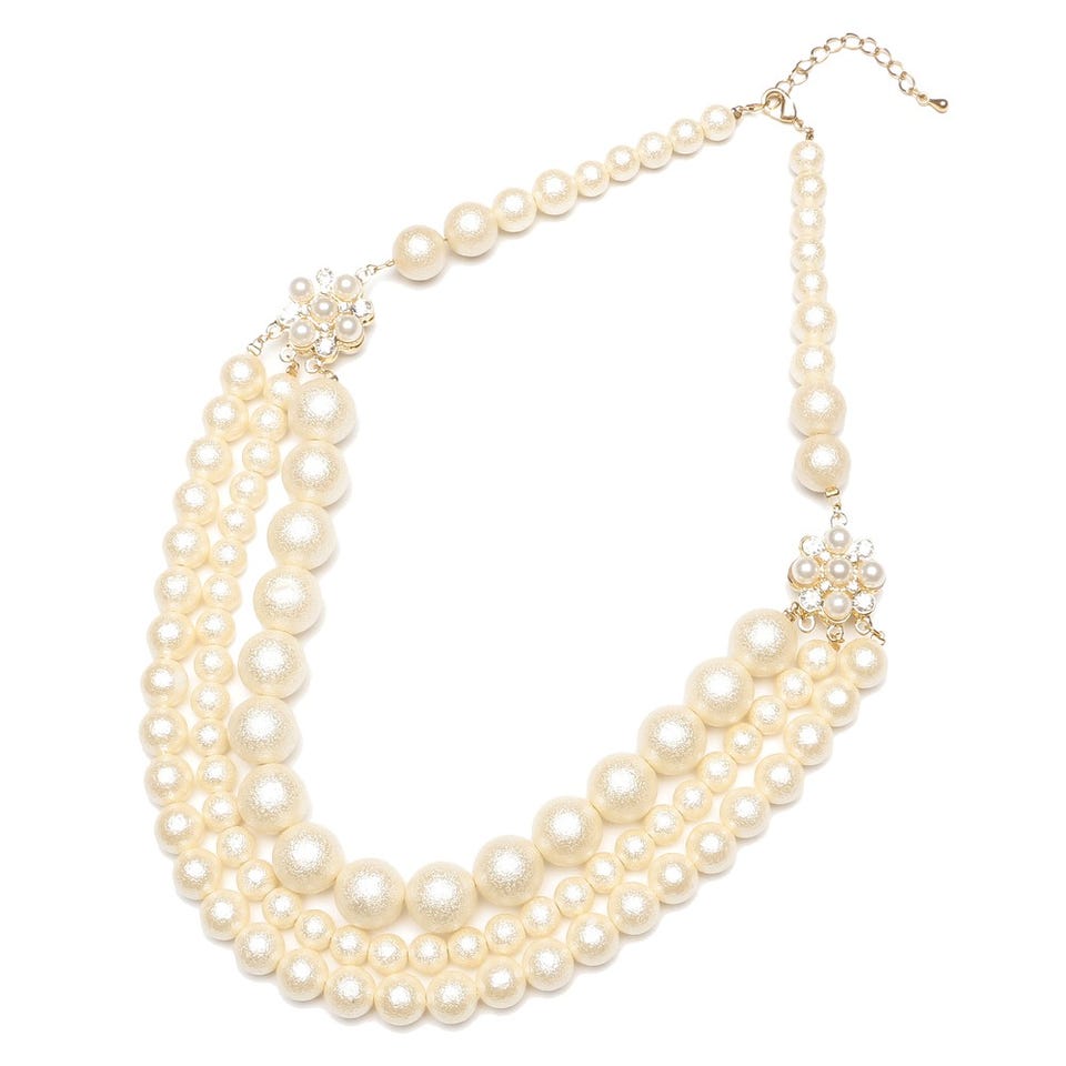 AneMone コットンパールネックレス 3連パールデザイン ホワイト