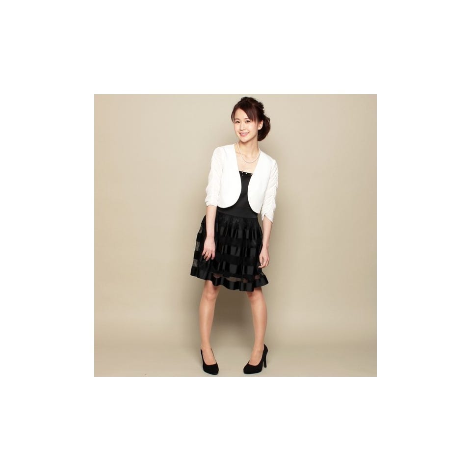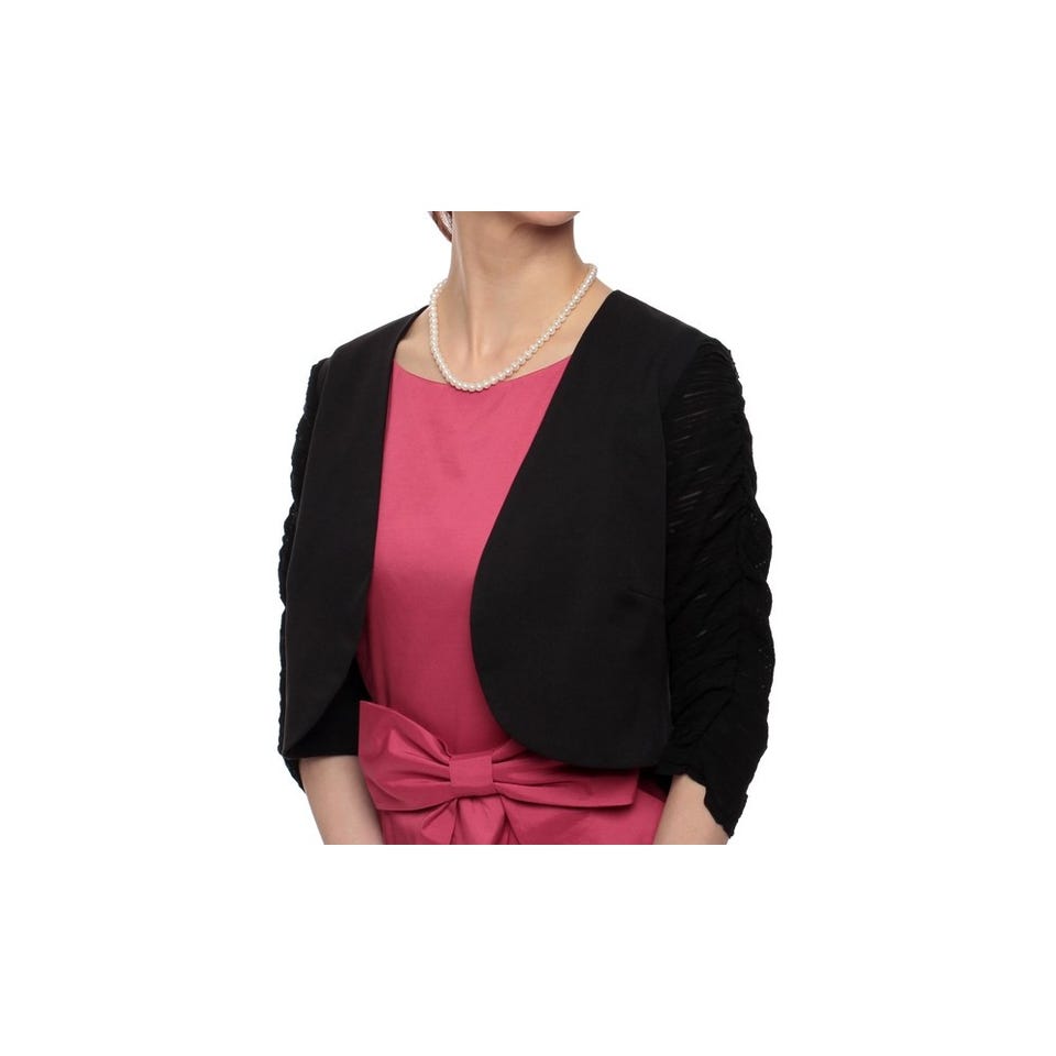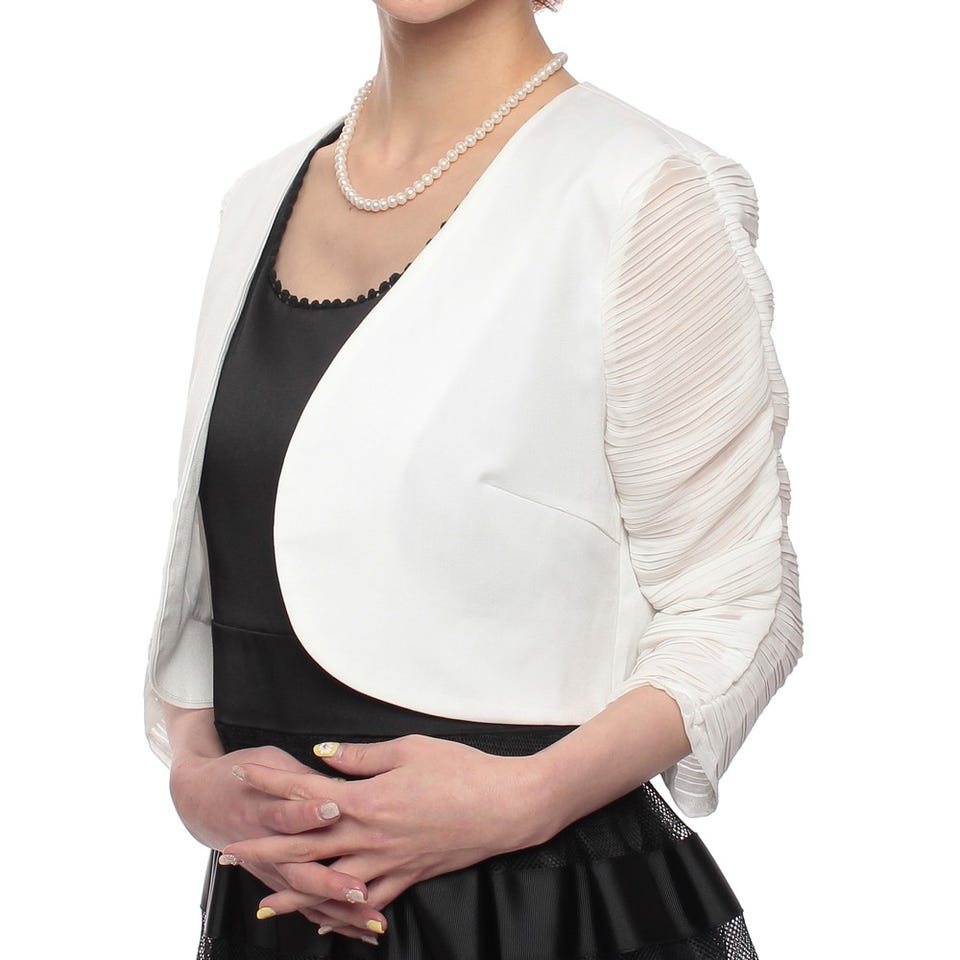プリーツの入ったシフォンの袖が特徴的なショート丈ボレロです。フロントにダーツを入れてすっきりとしたシルエットを実現。シンプルなドレスを合わせてバランス感のあるコーディネートを楽しむのがおすすめ。