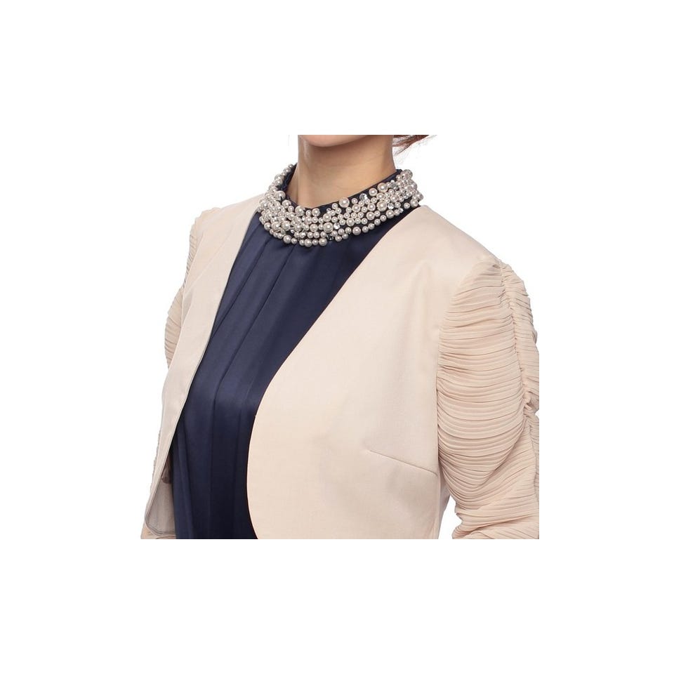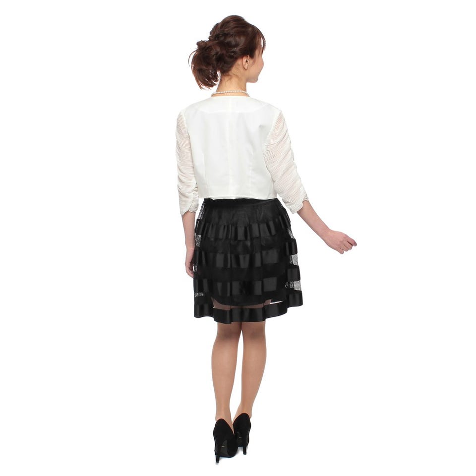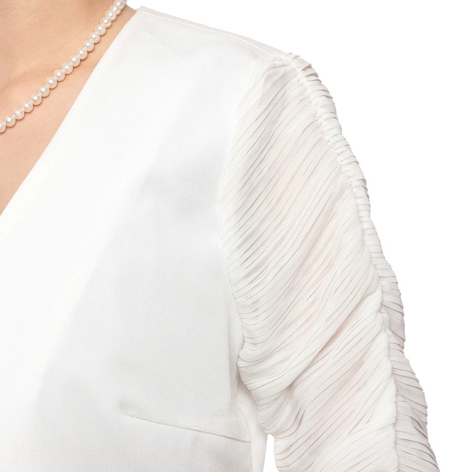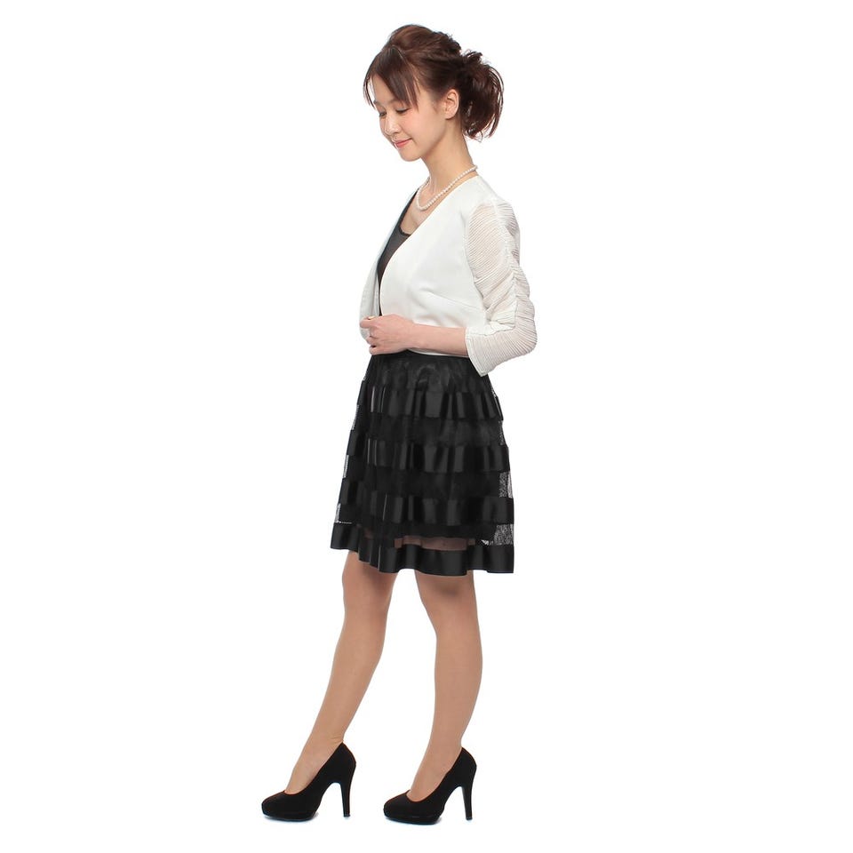 プリーツの入ったシフォンの袖が特徴的なショート丈ボレロです。フロントにダーツを入れてすっきりとしたシルエットを実現。シンプルなドレスを合わせてバランス感のあるコーディネートを楽しむのがおすすめ。