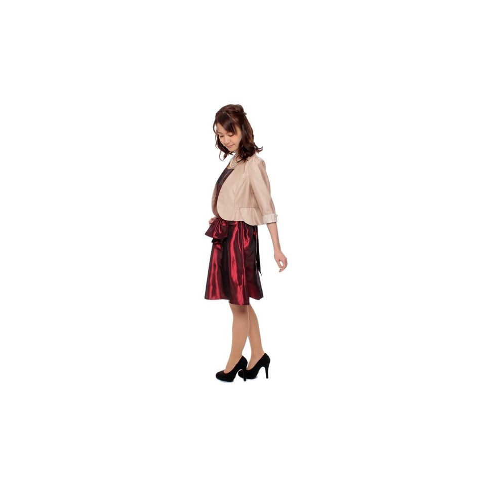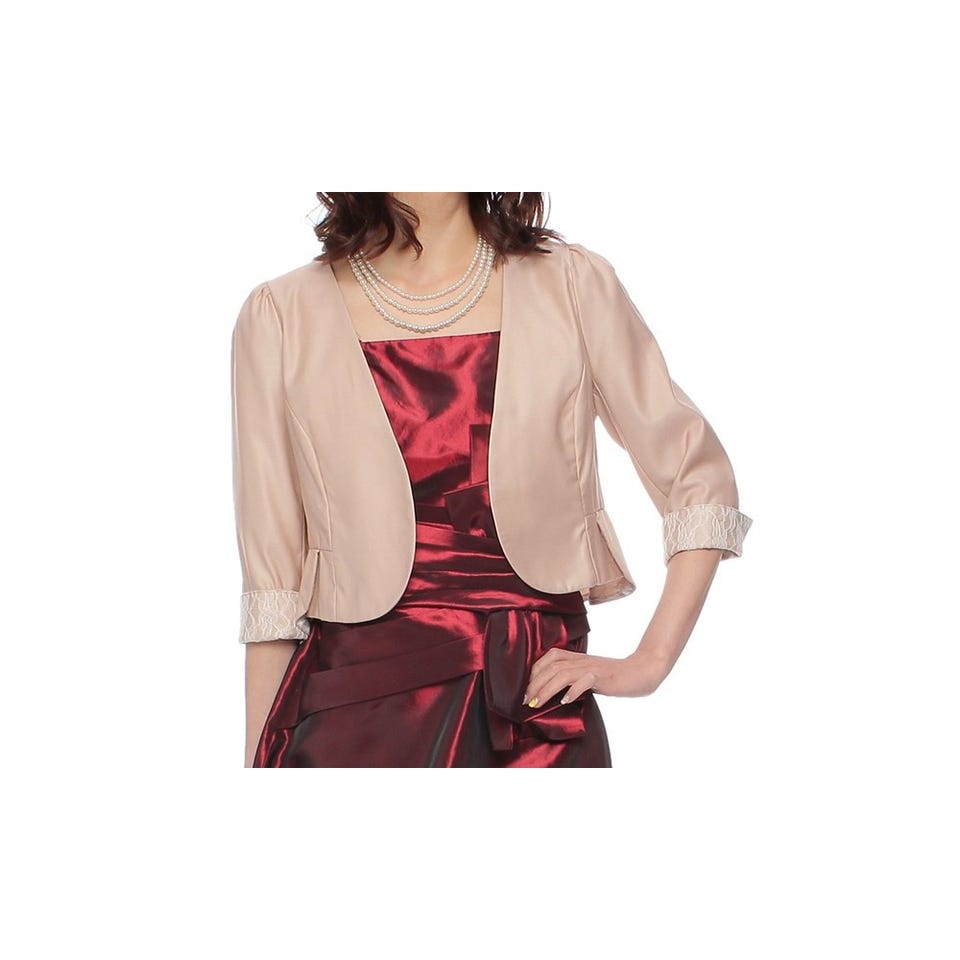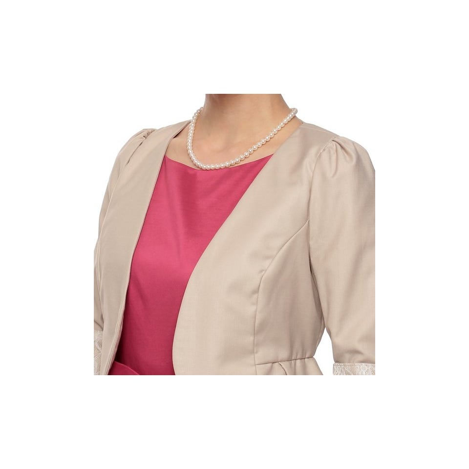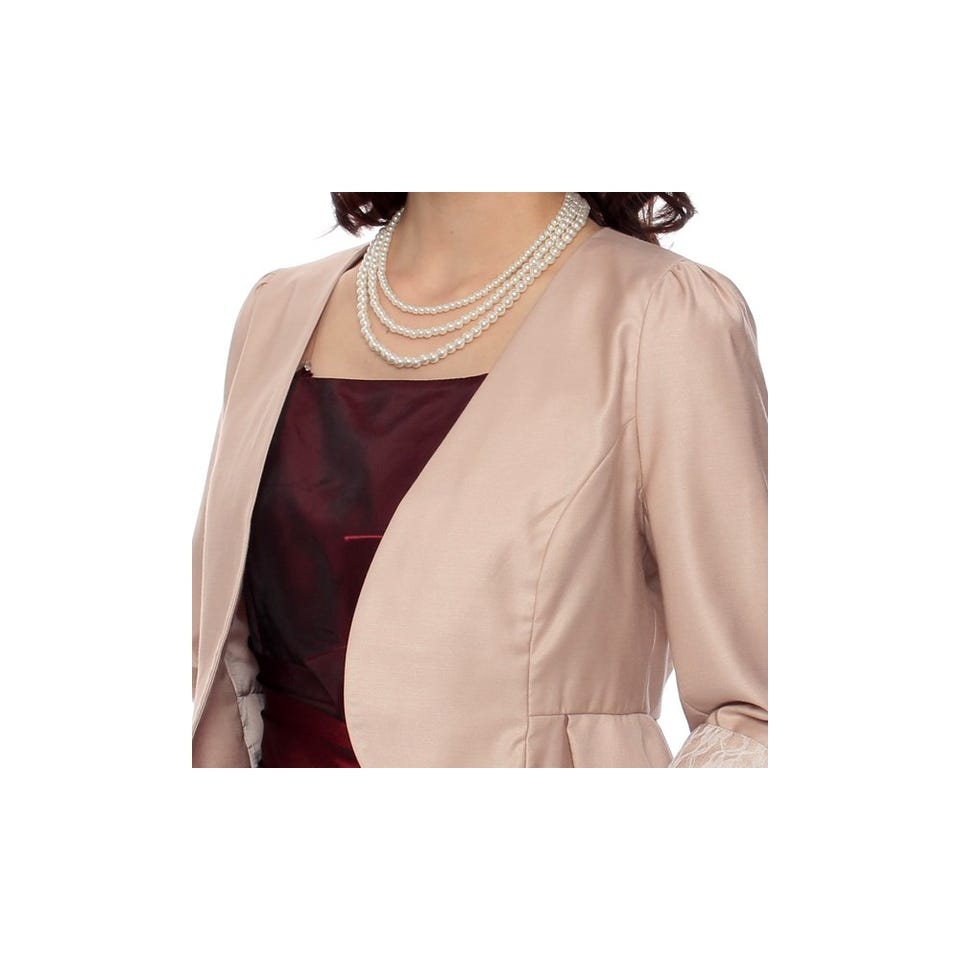 レディース 裏レース ノーカラー ペプラムライン 7分袖 ボレロジャケット アプリコット 9号