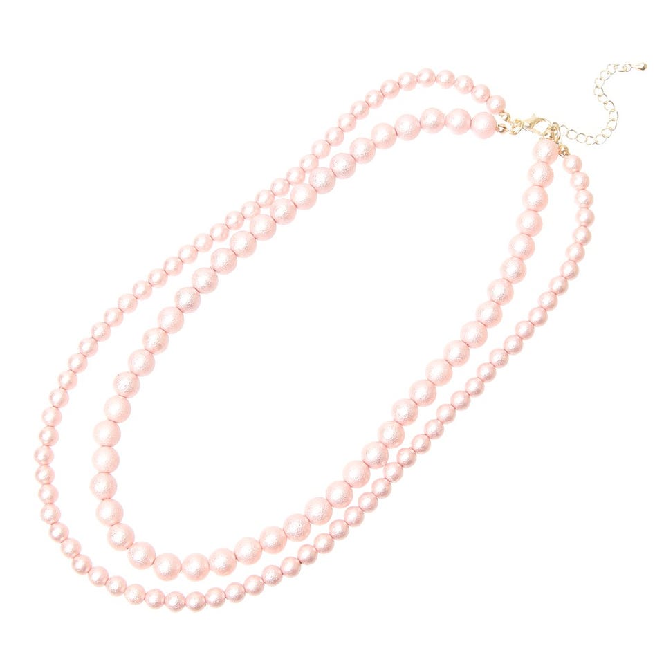 ピンクのパール調ビーズが上品な2連ネックレスです。サイズの異なるビーズと長さでシンプルなスタイルのポイントに。フォーマルなシーンに華を添える使いやすい1品です。