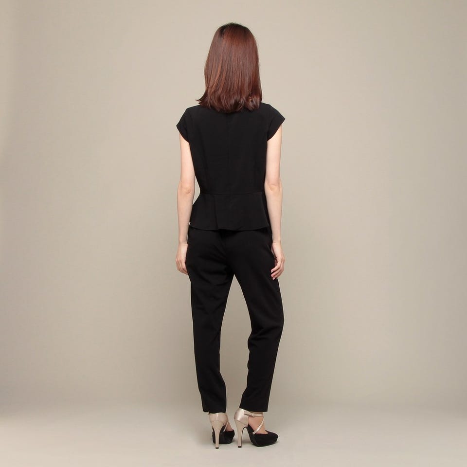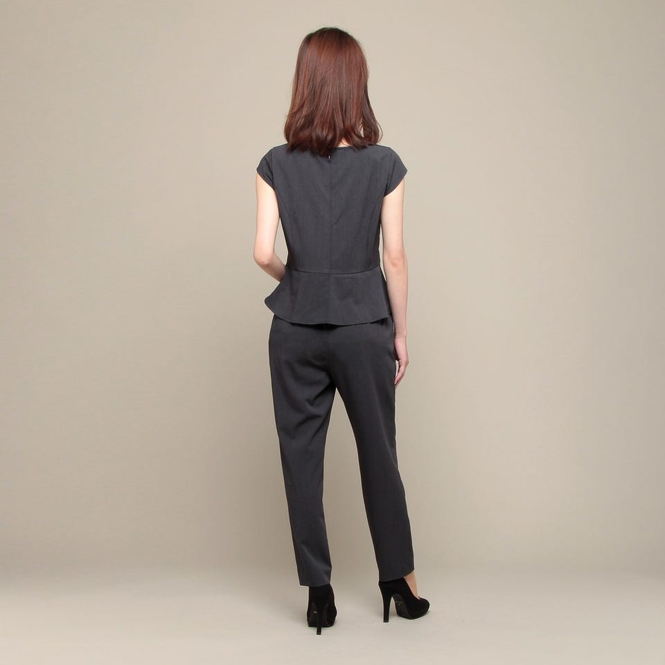 クールなパーティスタイルが楽しめるセットアップです。トップスはメリハリのあるフォルムに。パンツはテーパードさせすっきりとさせました。シンプルなルックスの小物が映える1着です。