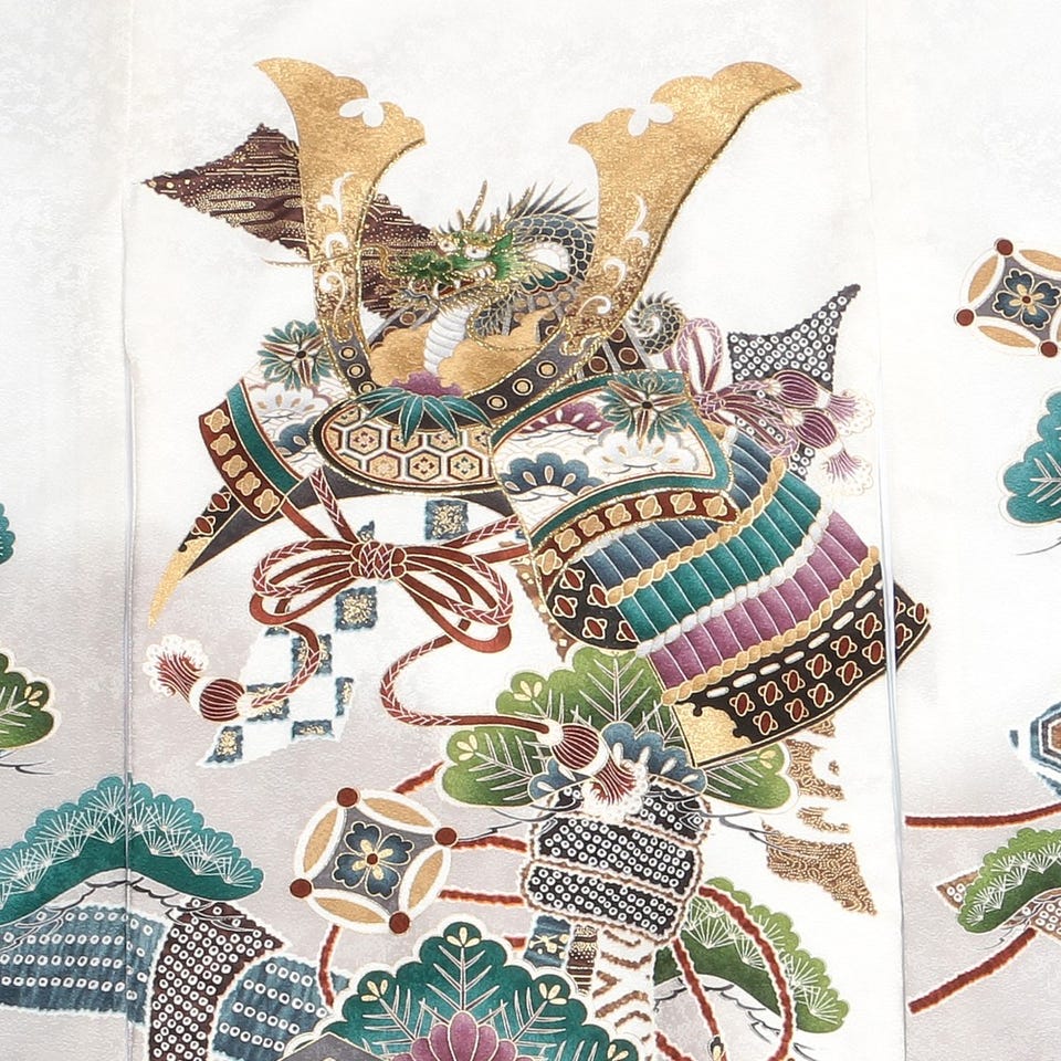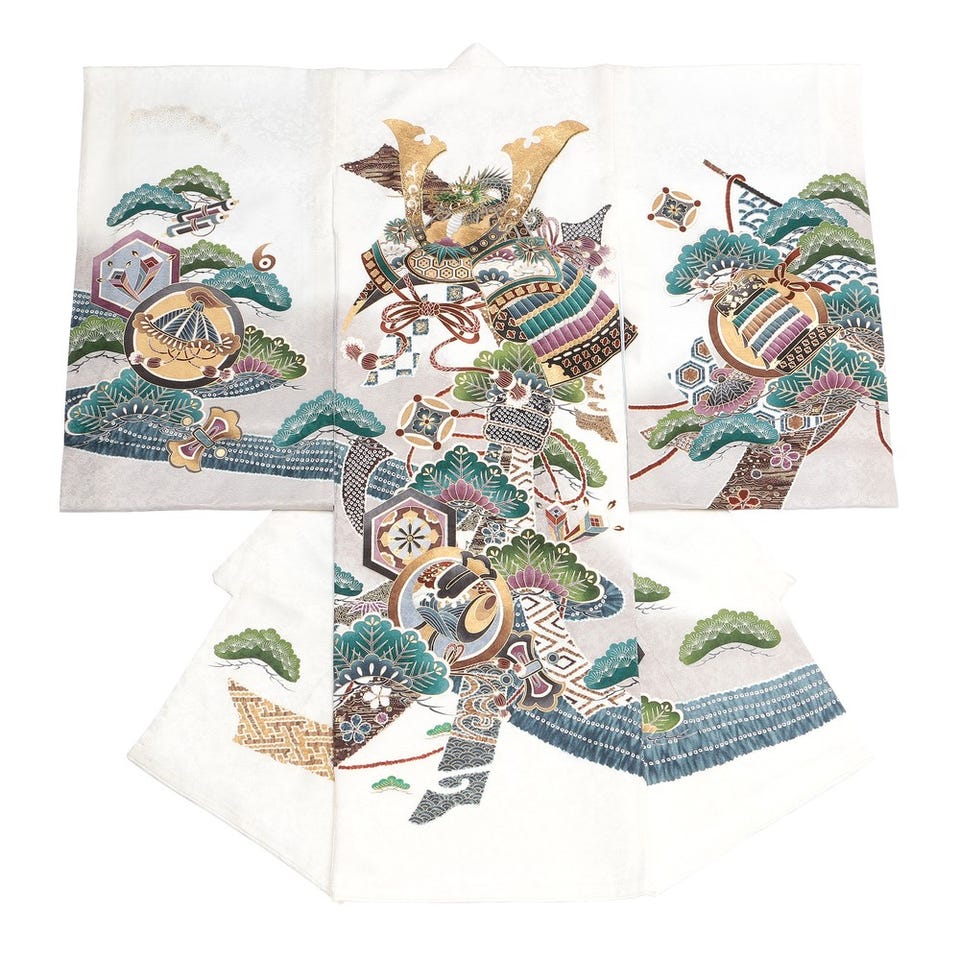 男の子 お宮参り 産着レンタル6点フルセット 正絹 大兜 亀甲紋 ホワイト