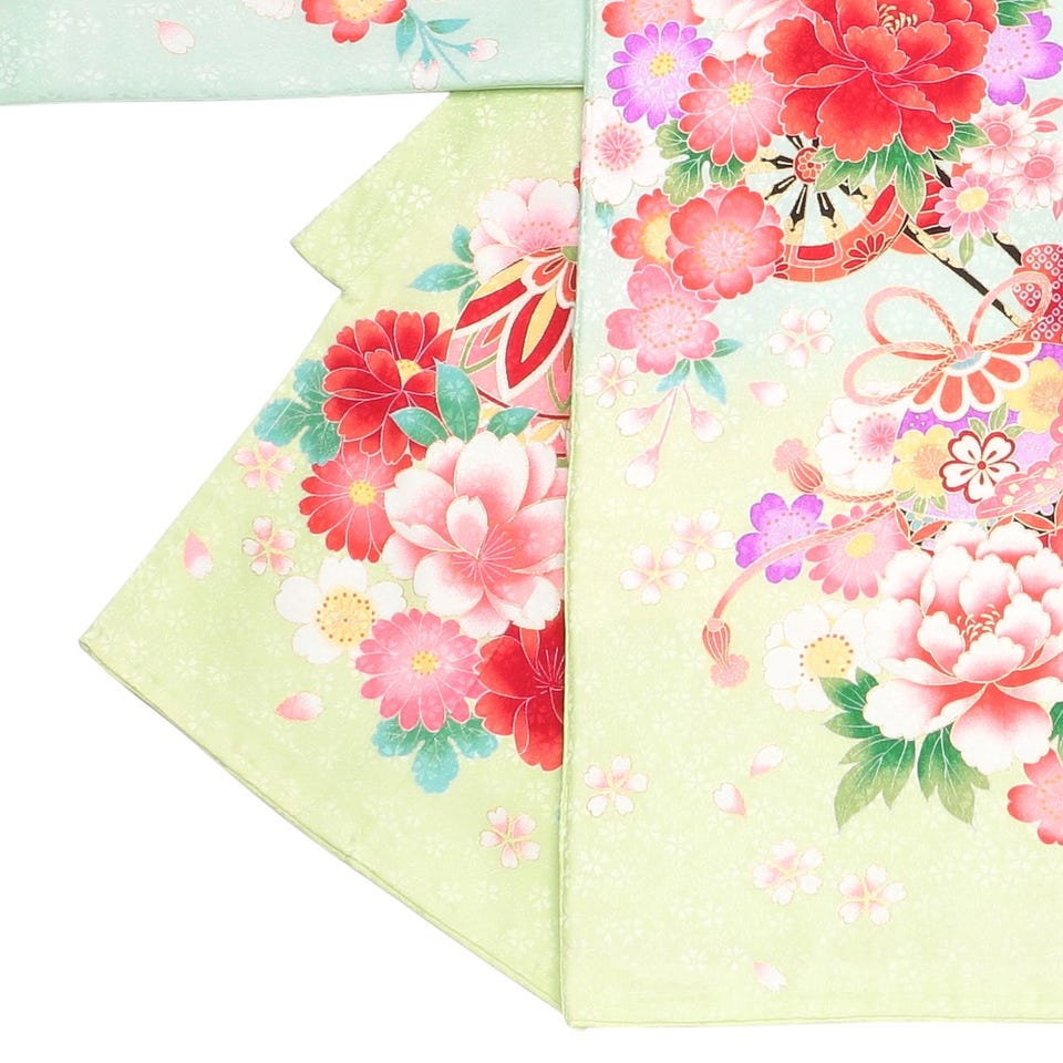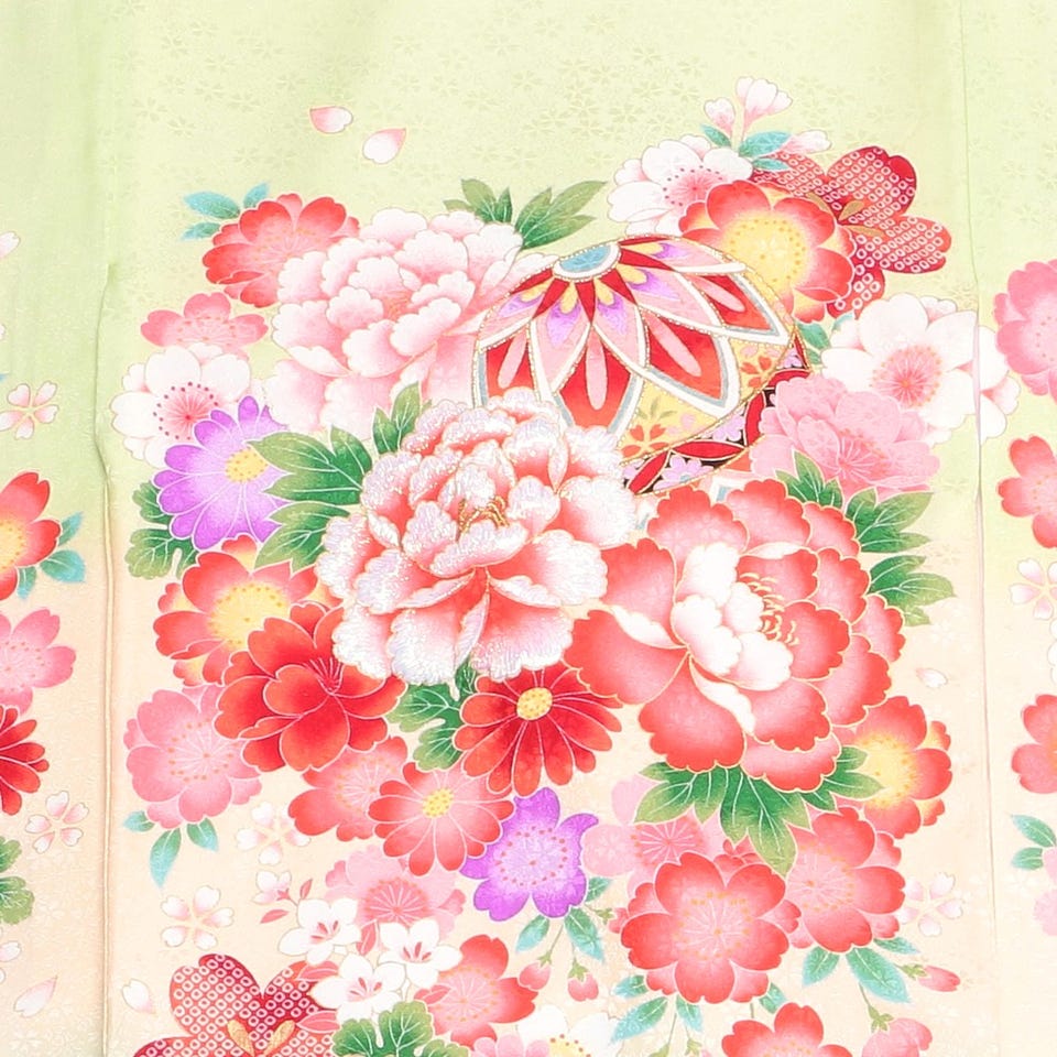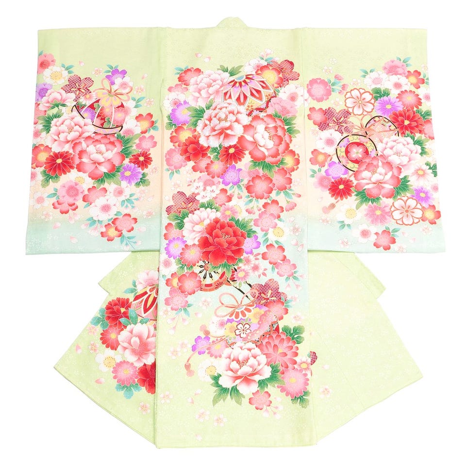 女の子 お宮参り 産着レンタル6点フルセット 正絹 毬 牡丹 グリーン