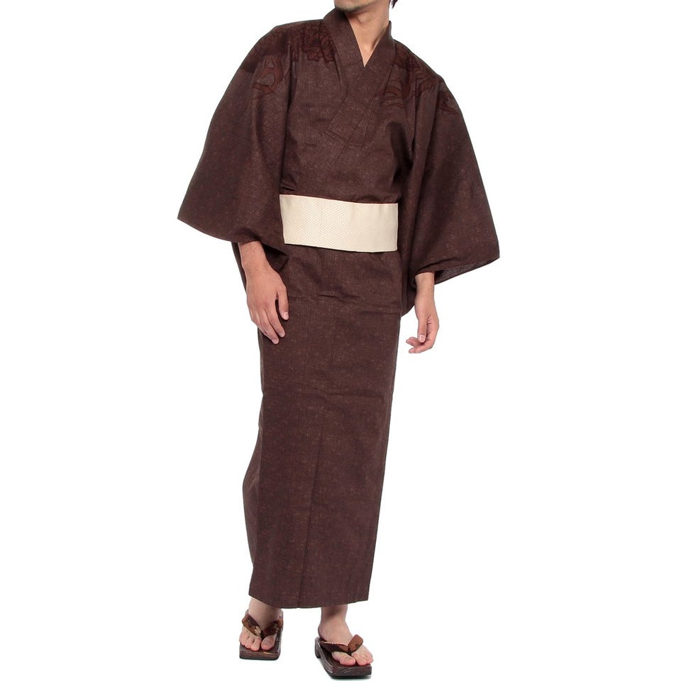 コムサ(COMME CA ) メンズ浴衣 フルセット 青海波・龍柄 身長目安175cm ブラウン