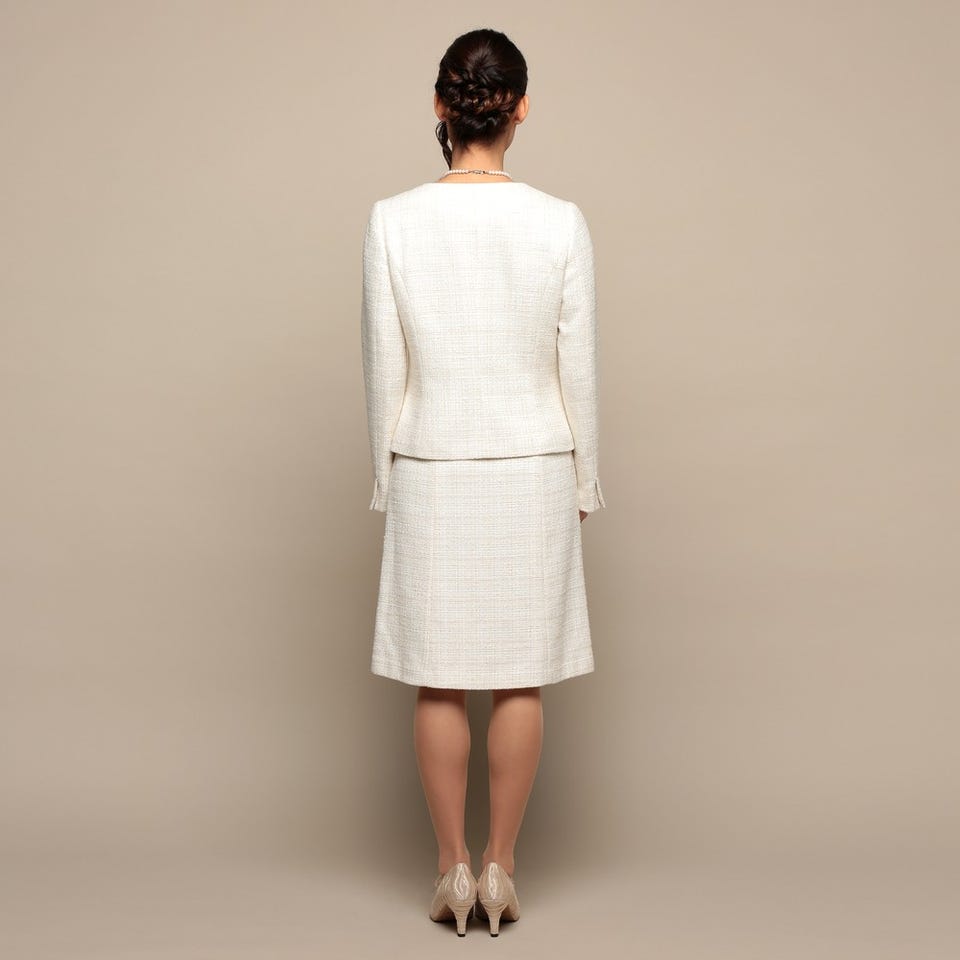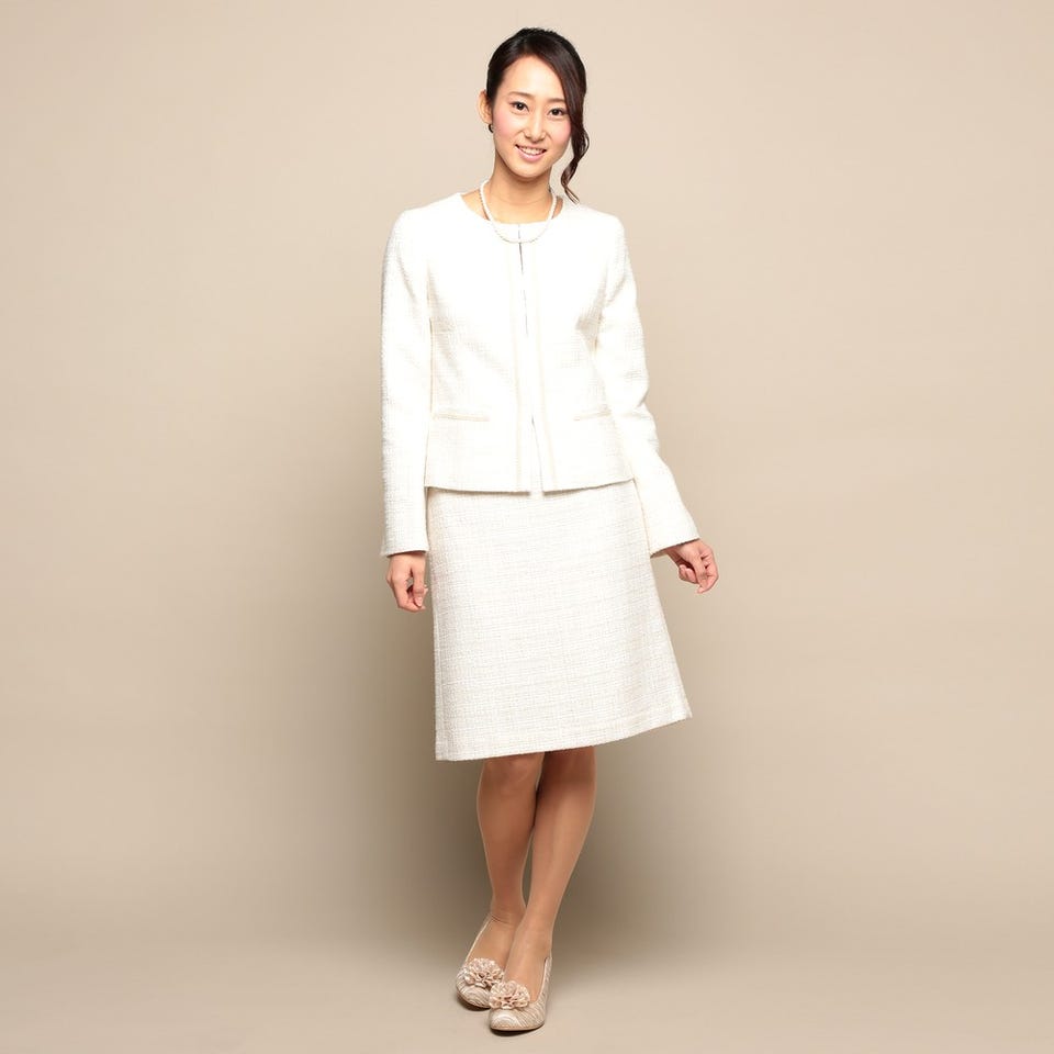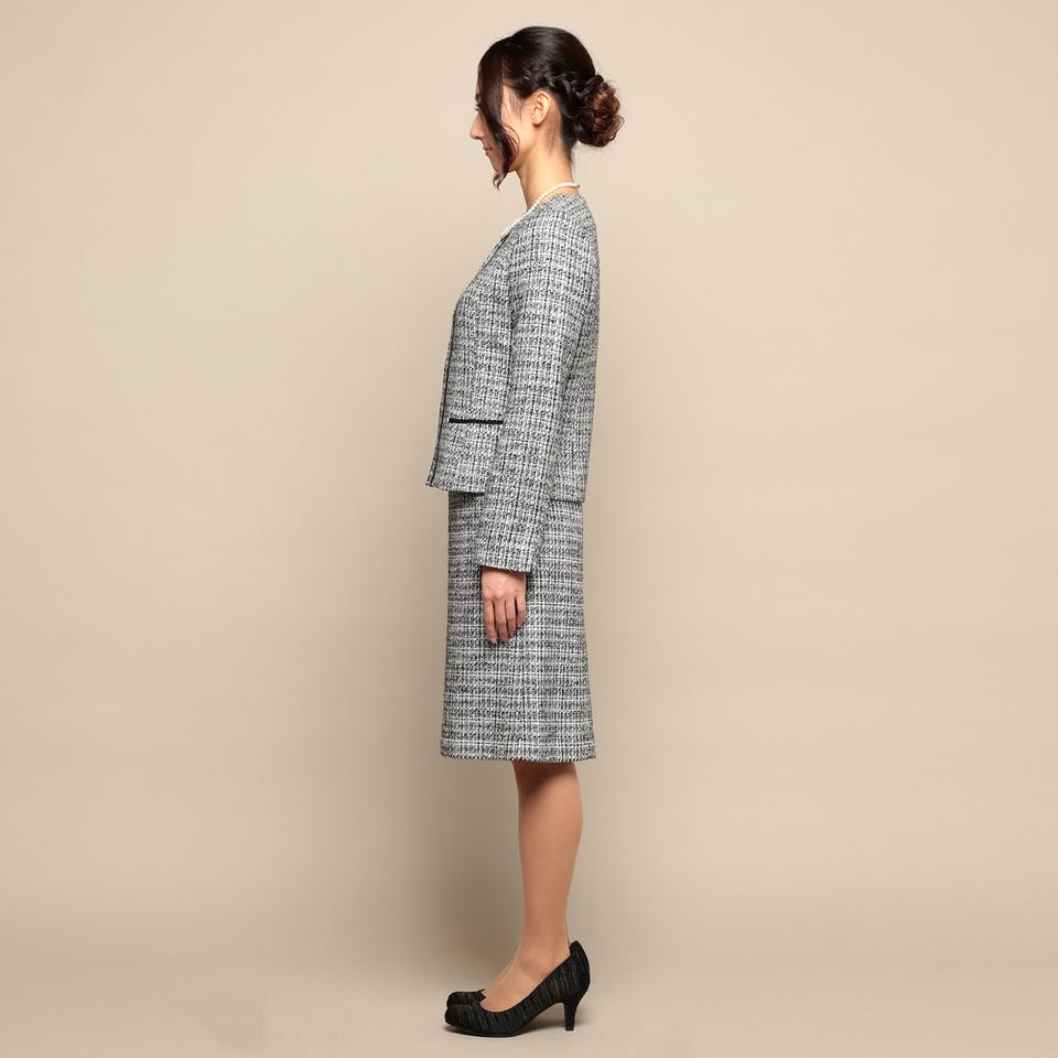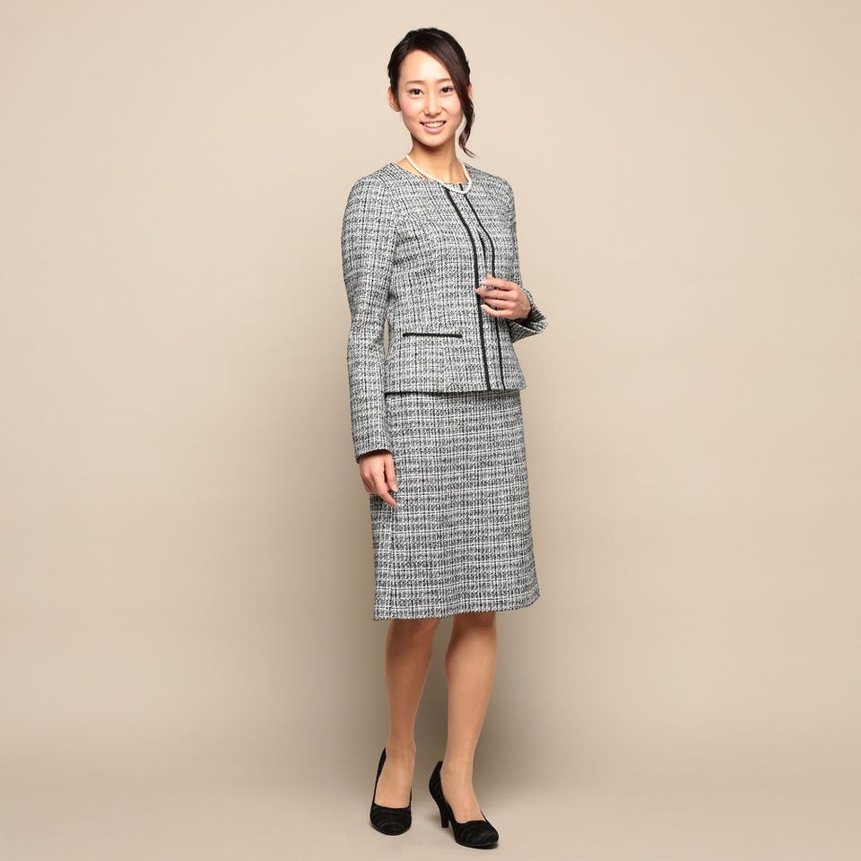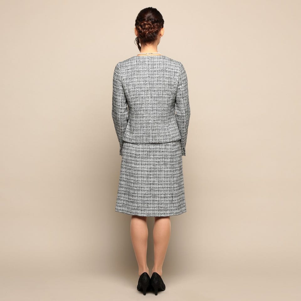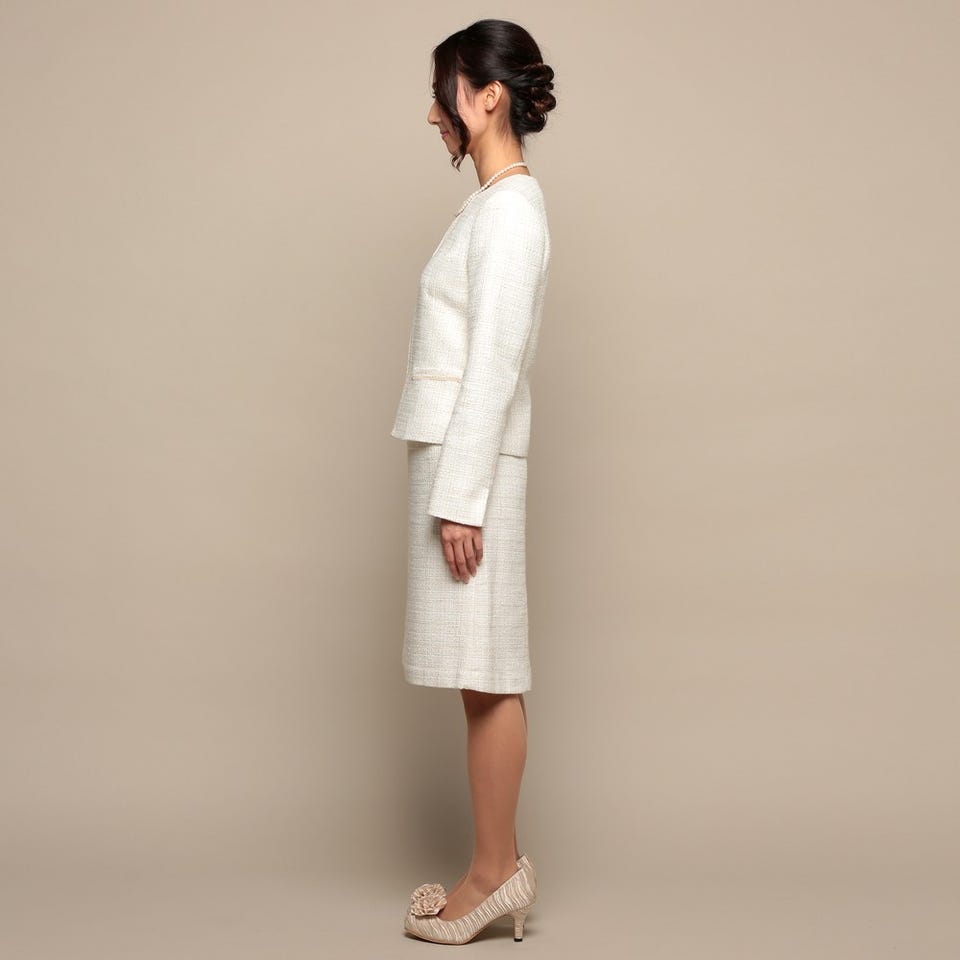 お子様の入卒式でのスタイルやフォーマルなお食事会など、幅広く着用していただけるスカートスーツです。